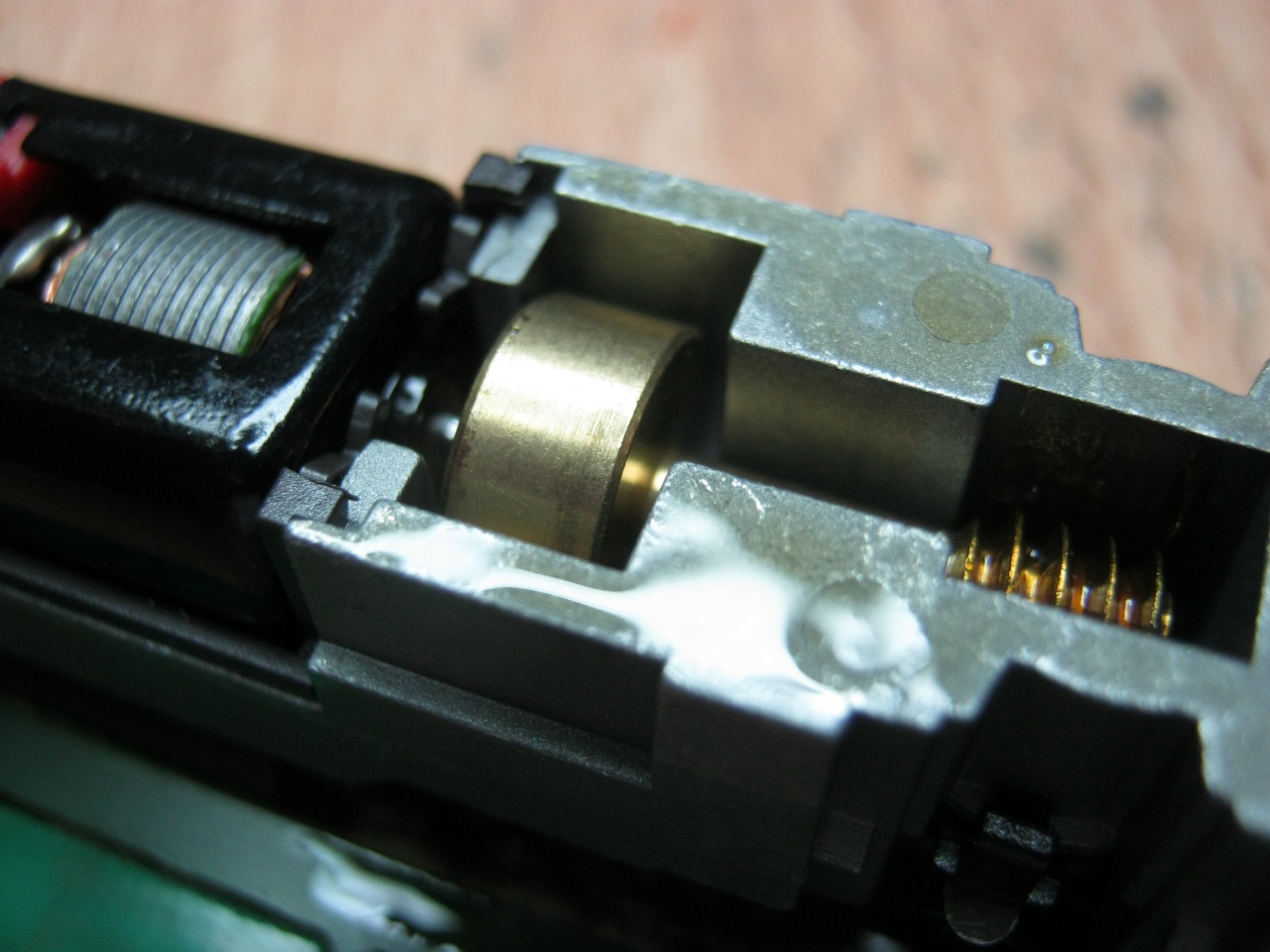 A régi körmotorokat a tengelyfészkeiken érdemes kenni egy fogpiszkáló hegyére éppen csak ráférő lágy zsírral (Tillig), mert ezekben gyakorlatilag nem igen van csapágy.