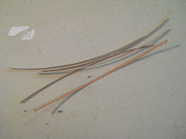 0,3mm-es nyák lemezből (nekem ez volt hirtelen kéznél, de lehet bármi másból is) 1mm széles csíkokat vágok.