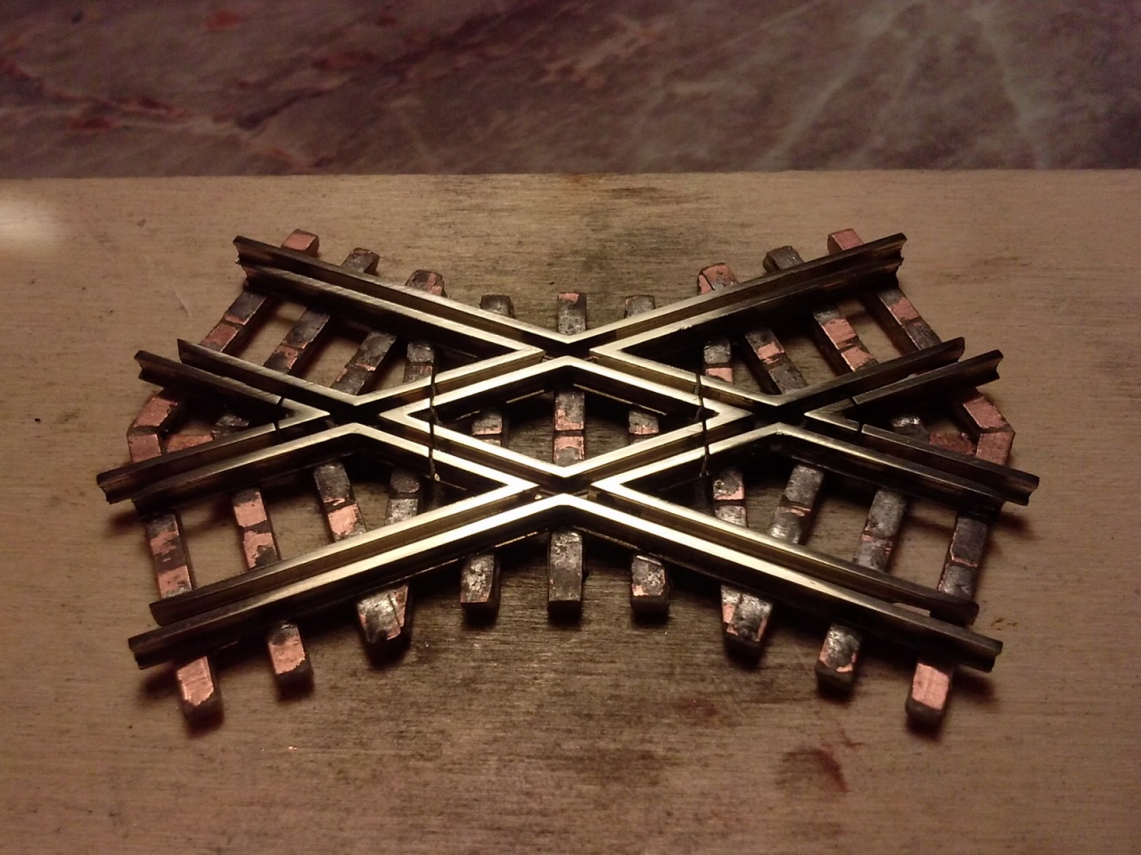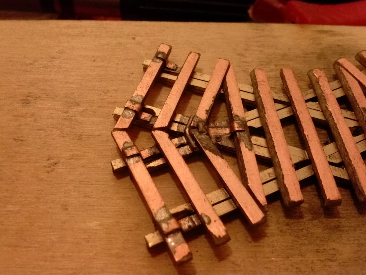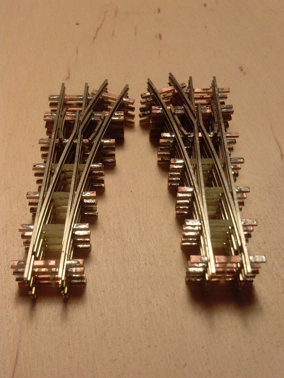 Az az igazság, hogy a méreteken kívül nem sok közös van a két kitérőben, tehát a koppintás sem állja meg a helyét, mert ezt én terveztem. Más a szívdarab (a Busch 22,5 fokos, az enyém 16, ahogy az ív kívánja), más a csúcssín kialakítása, a talpfaelrendezés is kicsit más, és ez alatt nincs vaslap, ami a Busch lényege.