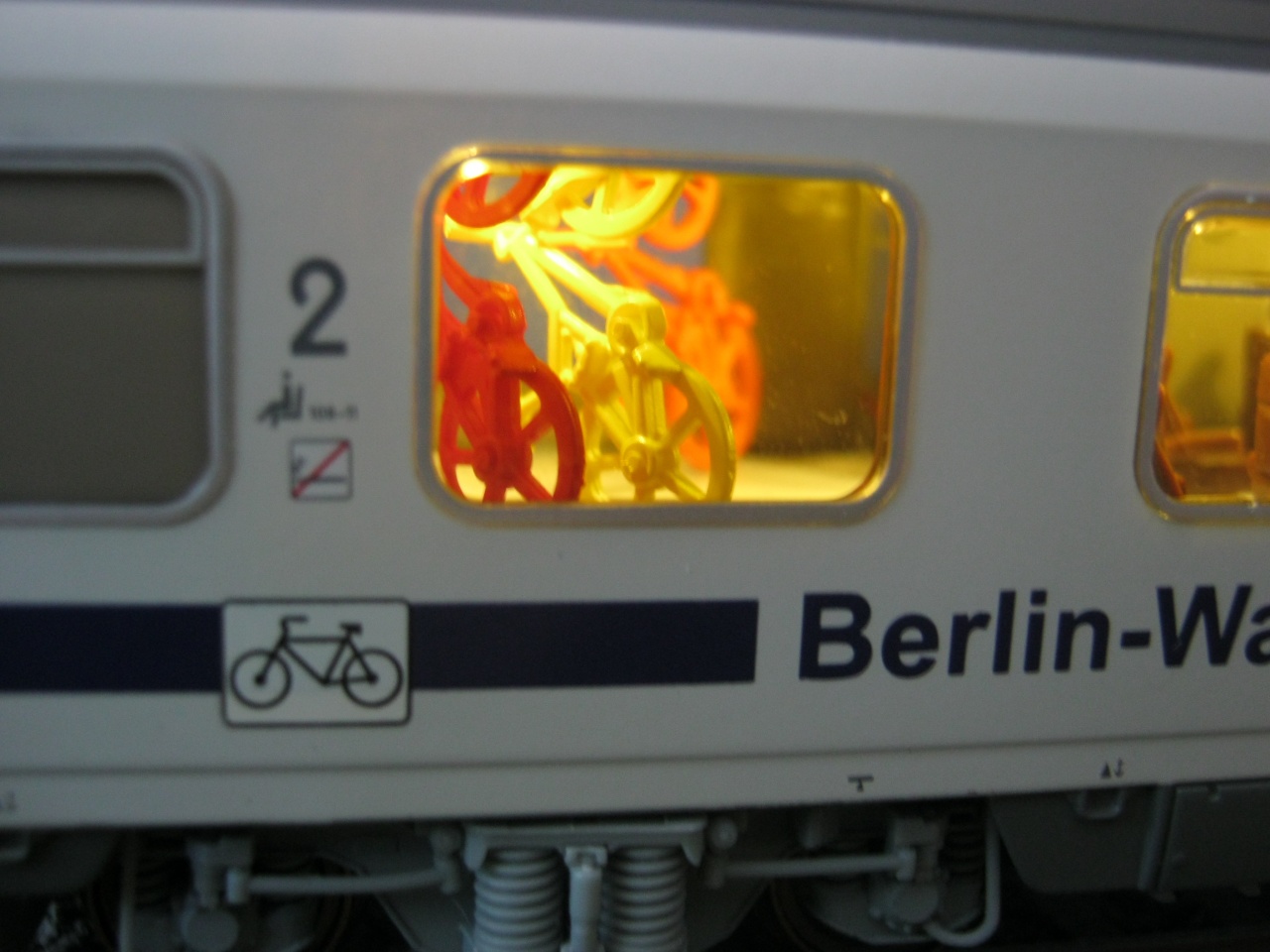 Egy kis kocsivilágítás, saját módra. H0 méret, ACME 52739, a PKP Berlin-Varsó Express bringás kocsija. |