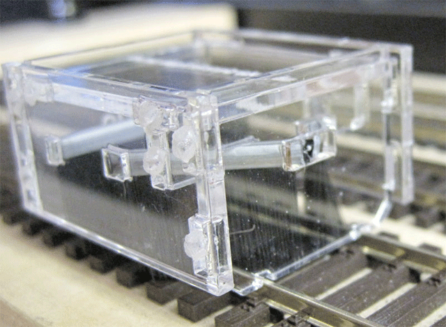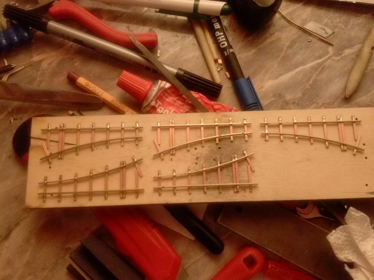 Az az igazság, hogy a méreteken kívül nem sok közös van a két kitérőben, tehát a koppintás sem állja meg a helyét, mert ezt én terveztem. Más a szívdarab (a Busch 22,5 fokos, az enyém 16, ahogy az ív kívánja), más a csúcssín kialakítása, a talpfaelrendezés is kicsit más, és ez alatt nincs vaslap, ami a Busch lényege.