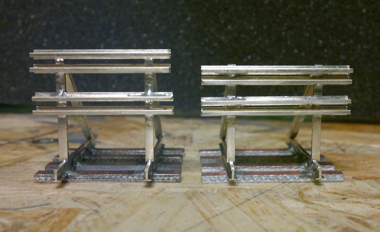 A magasság különbség azért van nagy valószínűséggel mert a felső kereszt gerendáknak kellene egy síkban lennie a sarokütközőkkel s az alsónak a HÉV-es közpütközővel.