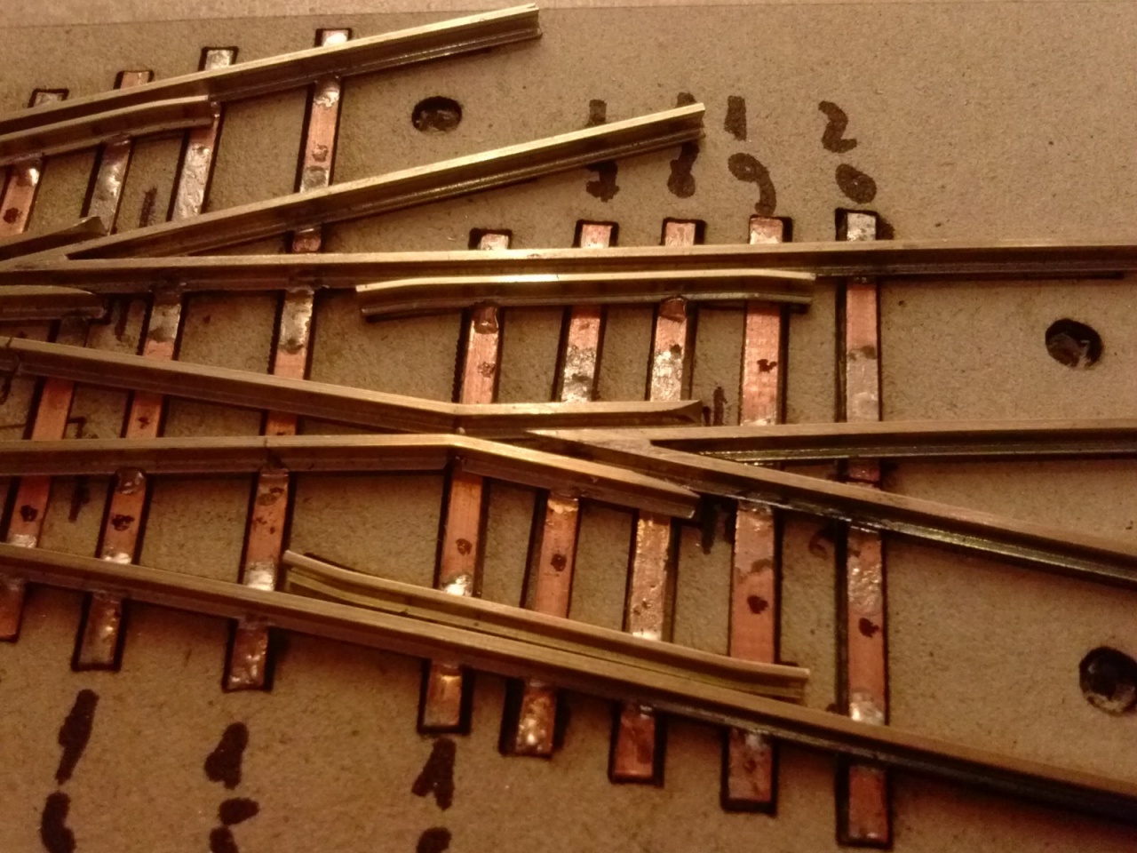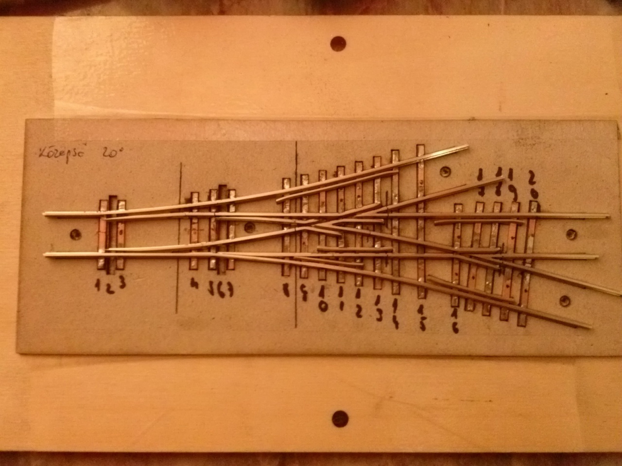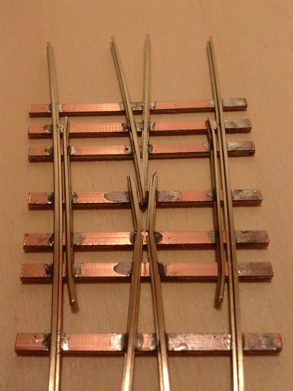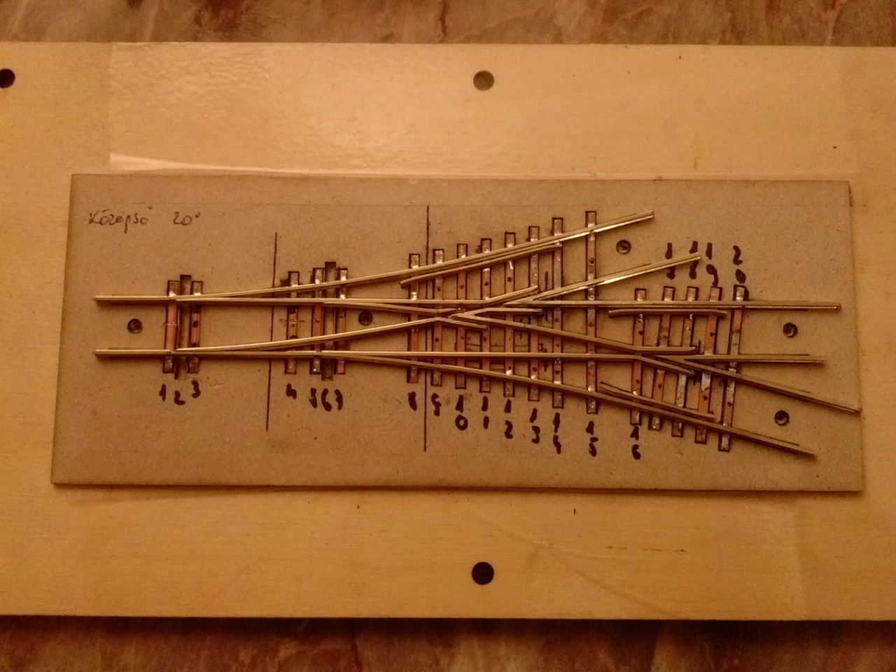 Itt van egy régebbi, ez még Peco sínre készült ha jól emlékszem, 450/850mm 10 fokos keresztezés: |