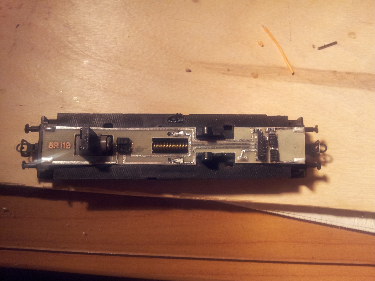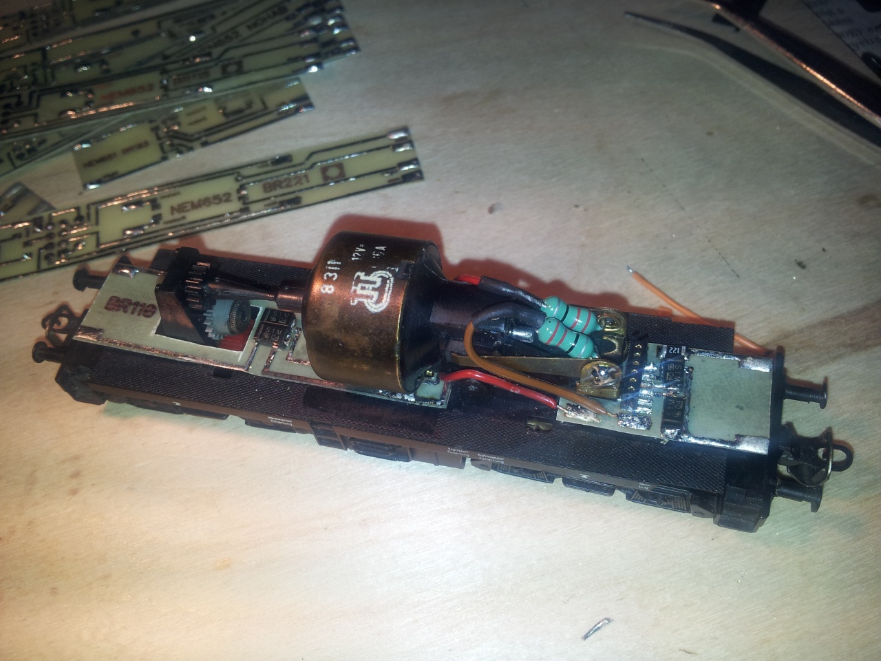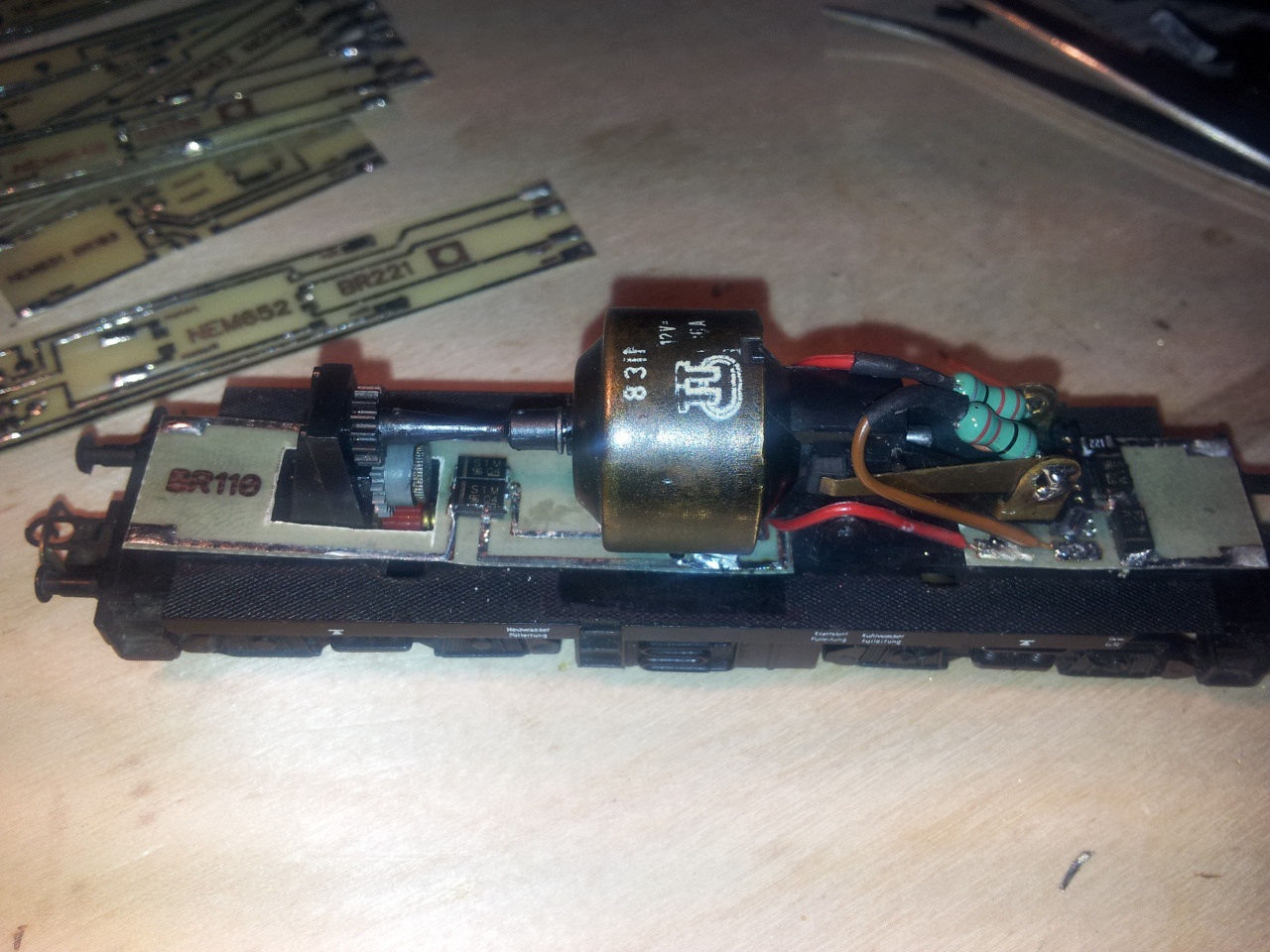 Amit még lehetne tenni, de az bonyolultabb: a kefék vezetése. Ezt ugyanis a NDK - ban kiracionalizálták ( eredetileg a Zeuke-ben volt). Ha szerencséd van akkor kapsz a modellboltban négyzetkeresztmetszetü rézcsövet, ha nem magadnak kell hajtogatnod és ezt beragasztani a motortestbe. A keféknek szorosan, de könnyen kell mozogniuk a tokban.