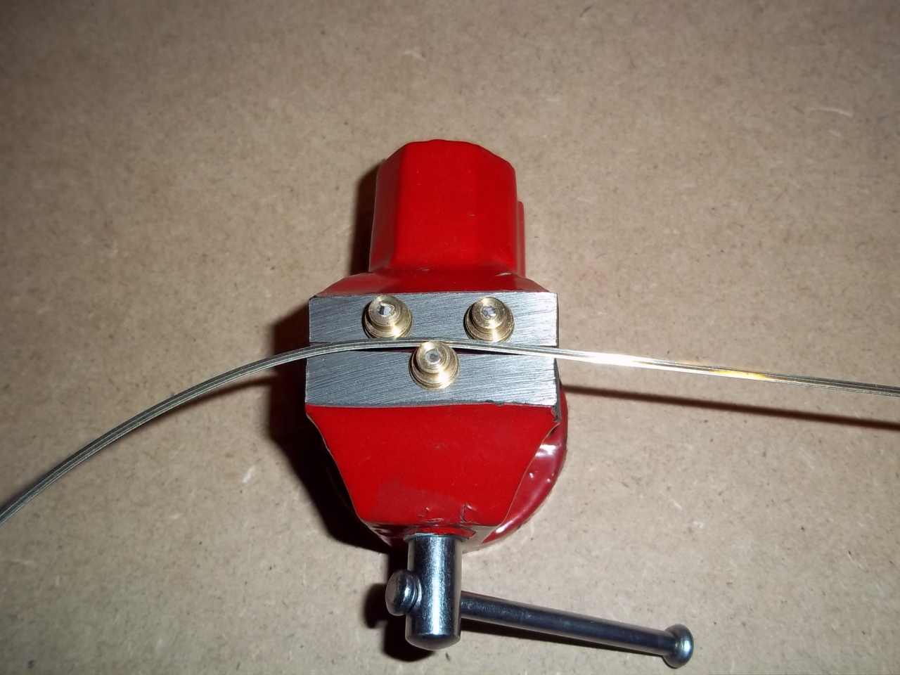 Na sikerült elkészítenem a saját elképzelésű sínhajlítómat. Alapnak egy több helyen kapható 1500 ft satut használtam, szétfúrni pont megfelelő. Arra a GABA TT vett görgőket szereltem fel.