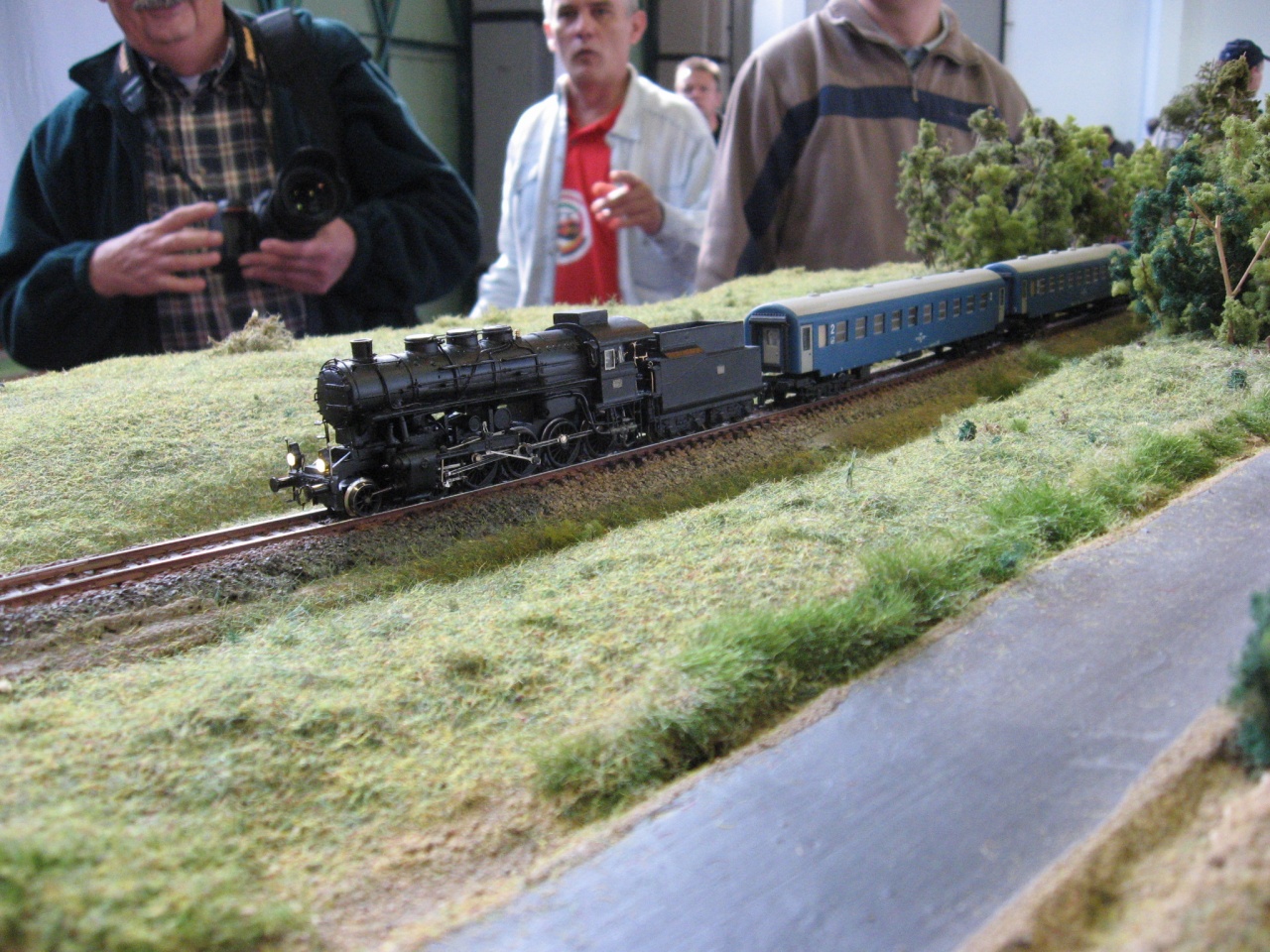 De ahogy Te is írtad, a 424-es is ott volt, és nagyon is ott volt. Sokan odasereglettek köré, amikor egy gyönyörű szerelvénnyel végigment a pályán. Nektek, alkotóknak kellett volna elsőnek végigvezetni és hallani azt a sok felmorajlást és csettintést a gép láttán. Látni a sok vaku villanást és hallani, hogy még a külföldi modellezők is megcsodálták. Különmenetekkel várták és fotózták a modulokon.