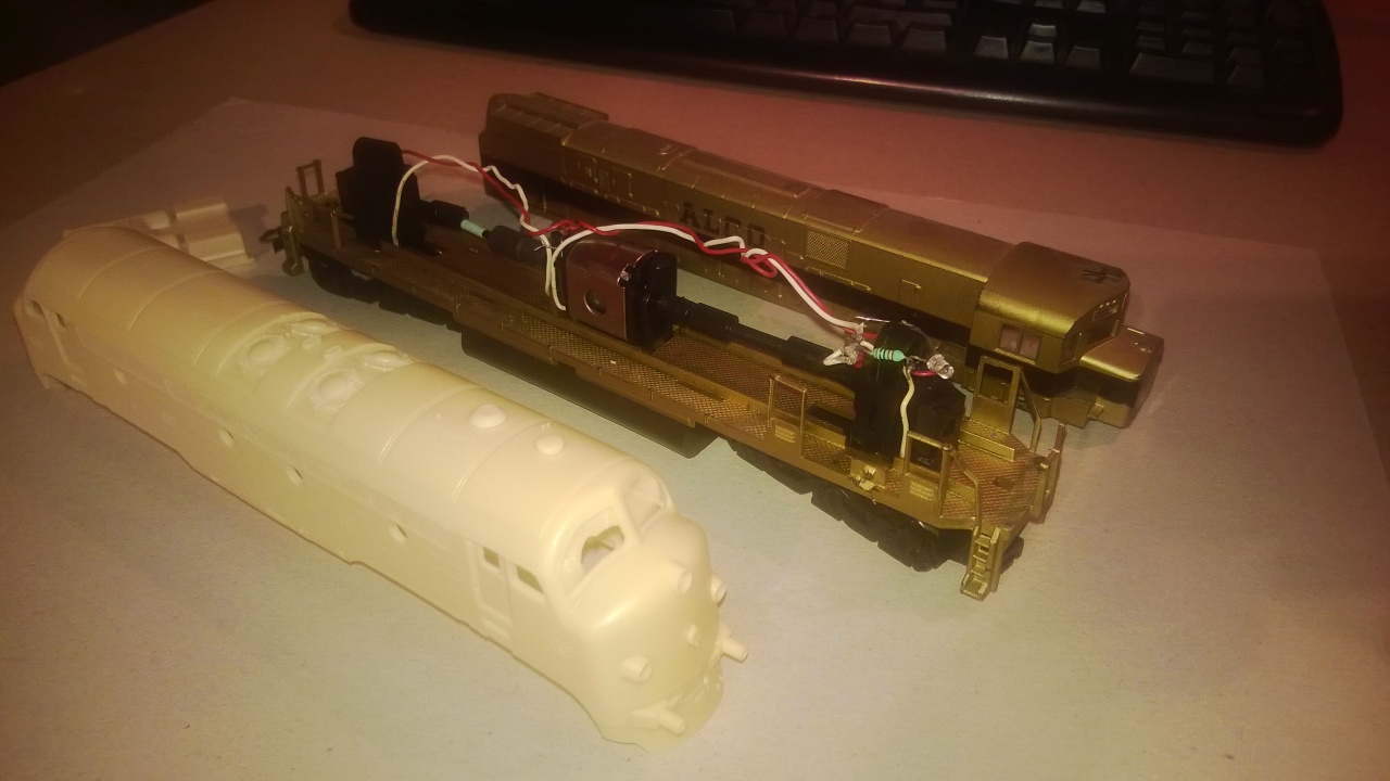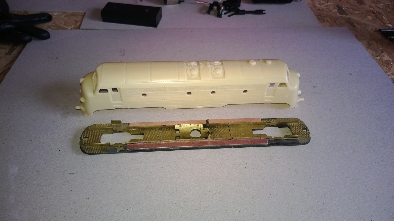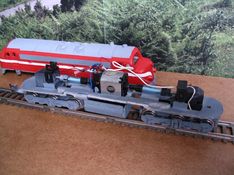 Hasonlóképpen készülget a Nohab-om, műgyanta kaszni, Mehano hajtás. Az alvázat a motortartó előtt és mögött vágtam el és vettem ki belőle pár centit, így jó helyre kerültek a zsámolyok. |