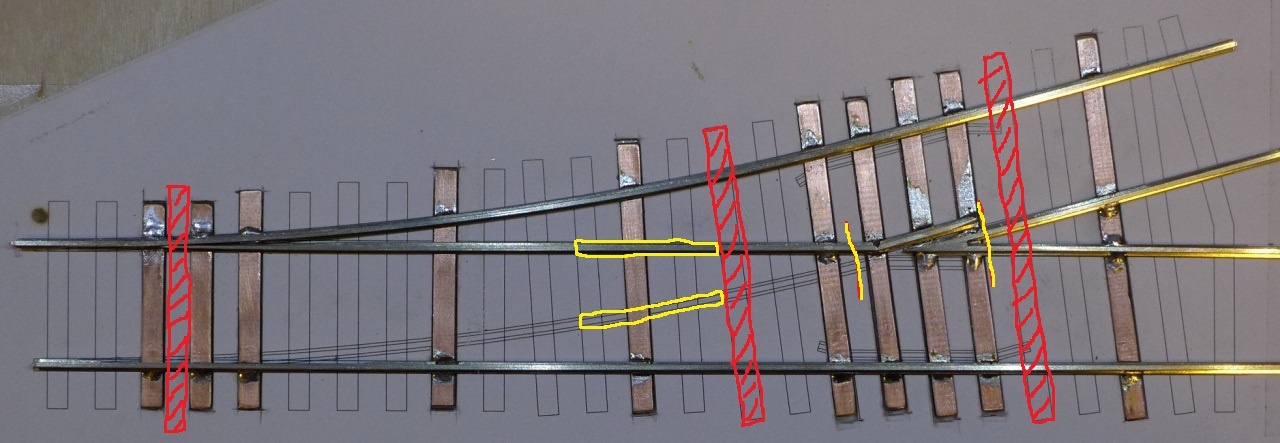 2. A csúcssínnnél nem elég, ha a szigetelő vágás után csak egy forrasztás tartja .Törekedni kell arra, hogy minden vágányelem legalább két helyen legyen leforrasztva.