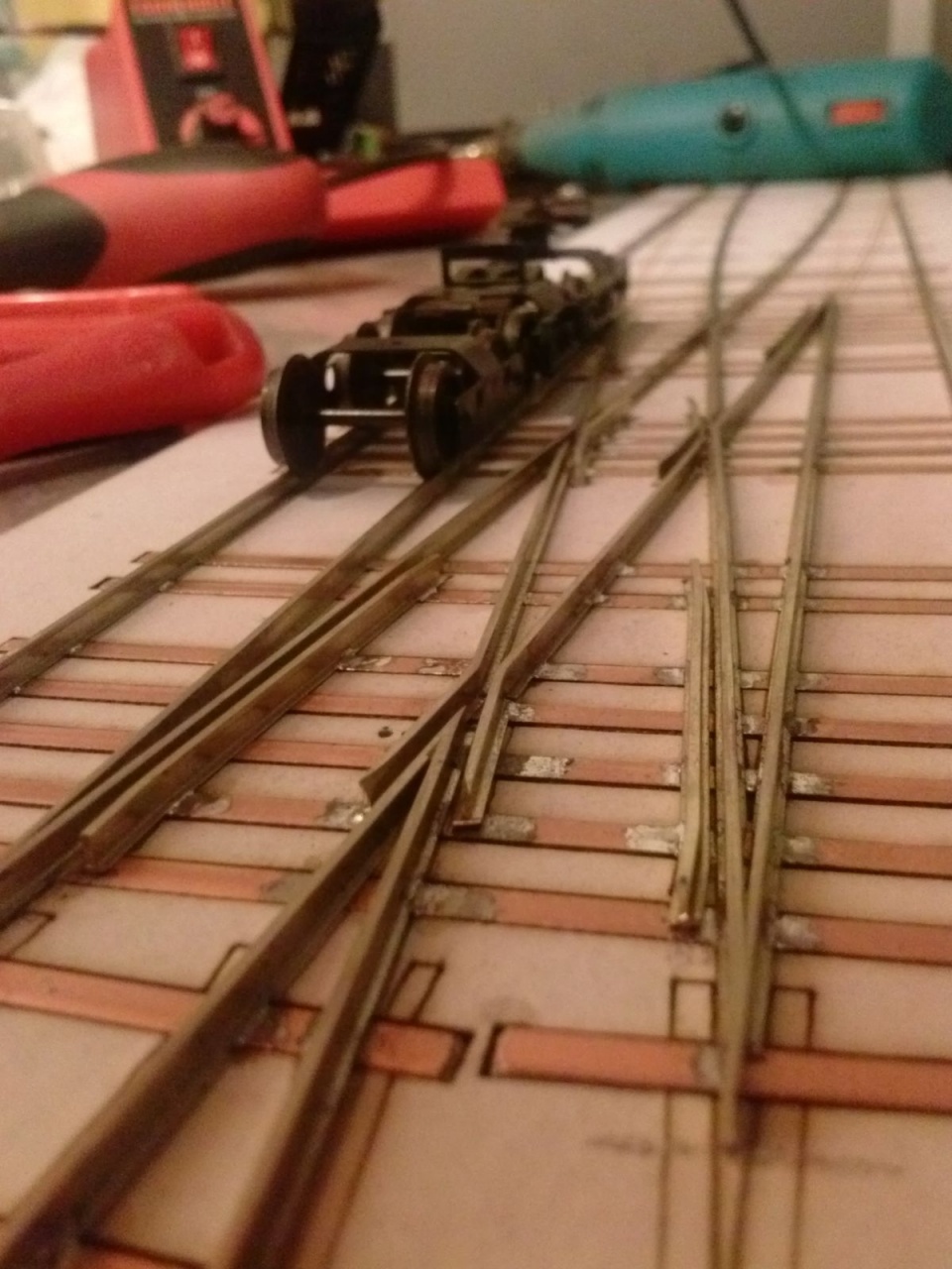 Látom, kicsit leegyszerűsítetted a vágányzatot! Viszont az átszelés szívdarabjaihoz tartozó vezetősíneket is lehagytad! Valószínűleg nem fog gondot okozni, mert ott egyenes szakasz van, de arra figyelj oda, hogy egy szívdarabhoz mindig tartozik két vezetősín.