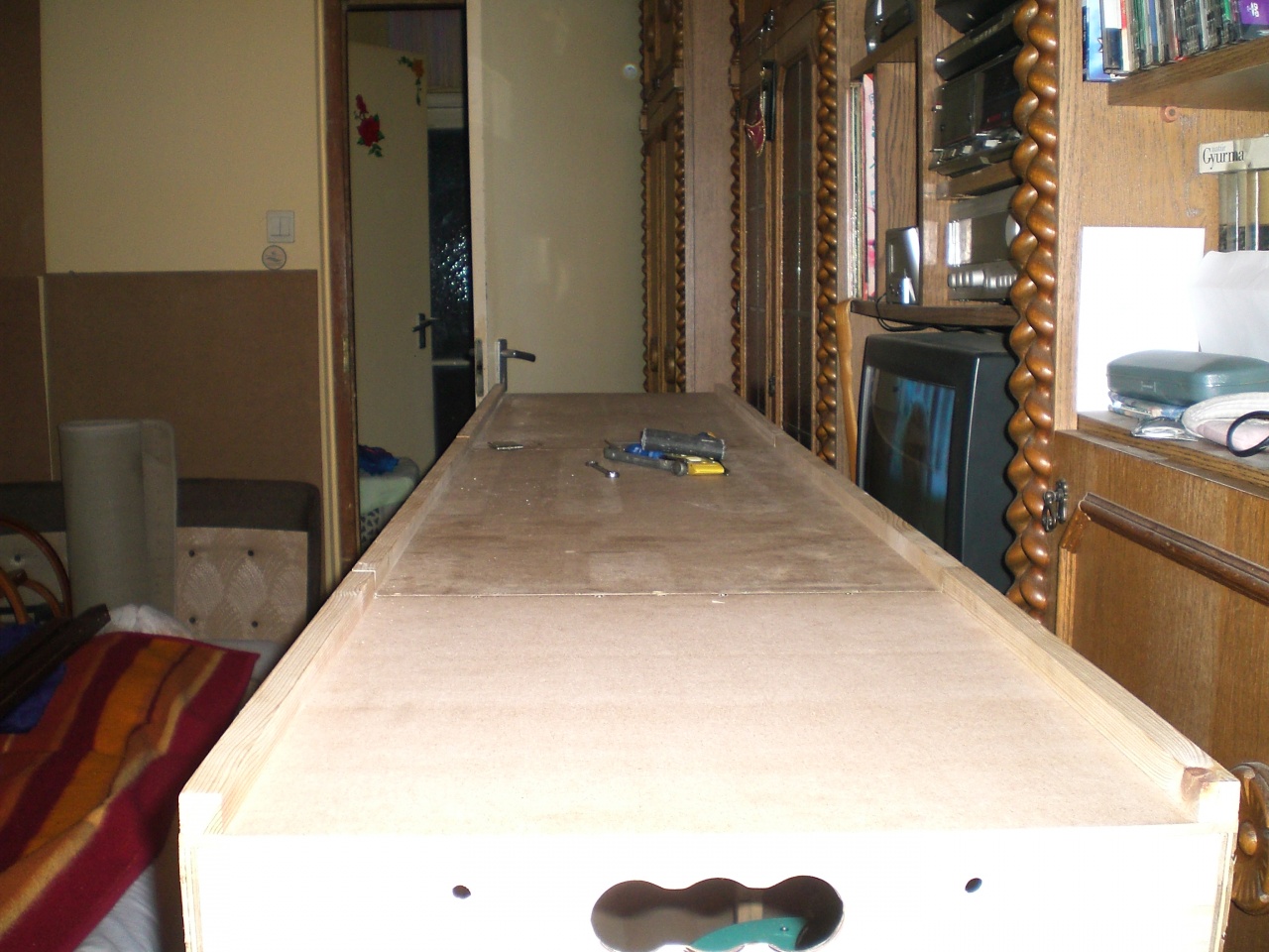A lábakra különösen büszke vagyok,mert teljesen hagyományos szerszámokkal itthon készültek. 1 lábhoz 1x0,8 m es nutot 208 db 6mm furómaróval készült lyuk összekötésével készítettem.Mindezt 6x.......................