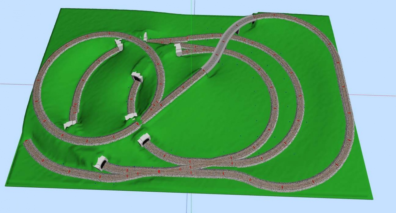 Elsőre bonyolultnak tünhet, de a vágányok java része rejtve (alagutak) lesznek. A felszínen városi rész, ipari telepek, dombok kialakithatóak. Car systemnek is van hely, tervbe van véve a késöbbiekben.