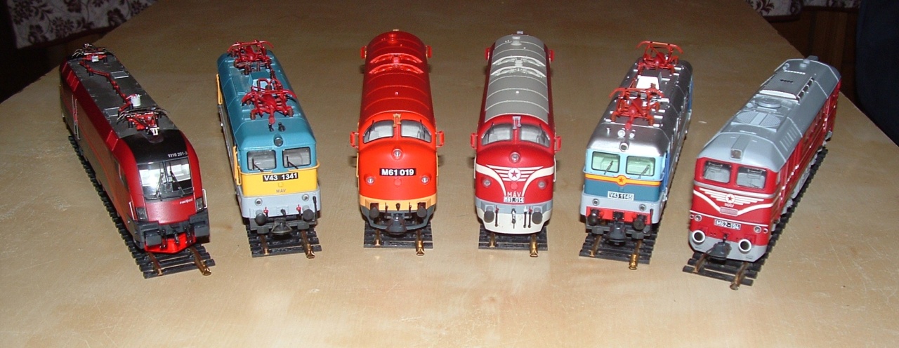 (Balról jobbra nagy vonalakban: 1,2,5,10,12: Trix; 3: Lilipt; 4,8,9:Fleischmann, 6,11:Roco, 7:Brawa.) |