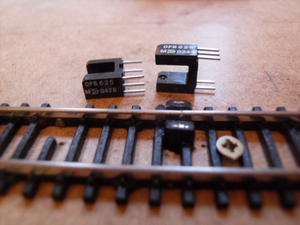 Söt még egyszerübb, ha a fénysugárzót (mindegy, hogy milyen, csak egyedi legyen) felrakod valahol a terepasztal fölé, és a pályába meg a talpfák közé berakod a fotodiodákat, akkor azok azonnal érzékelni fogják ha megszakad a fény (hordozhato pályánál akár az utcai világitotestbe is befér egy modulált fényforrás). A hajdani klubban nekünk a fényforrás a plafonon volt az egyik világitotestben, és egyetlen ilyen elemmel a pálya felét be tudtuk "világitani".