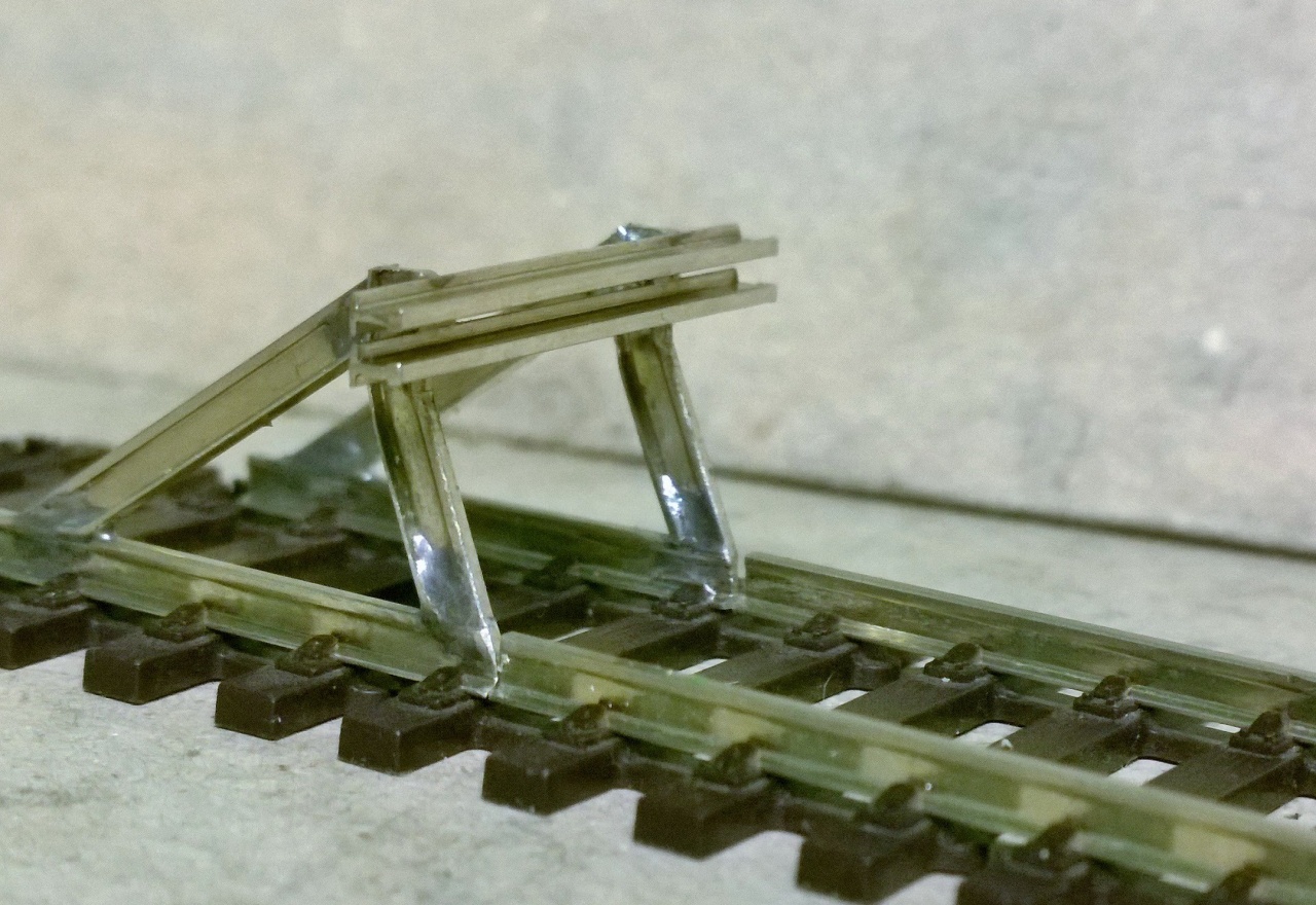 Úgy kifogytam az anyagokból, hogy pont annyi sínpapucsom volt itthon, amennyit fel tudtam vágni a négy váltóhoz szükséges 32 darabra. Ebben az a gáz, hogy váltónként 1-2 db-ot mindig el szoktam szúrni. Most megúsztam. Ugyanez volt a helyzet a csúcssínek csapjaihoz használt kemény réz huzallal. Kb. 5mm maradt belőle. |