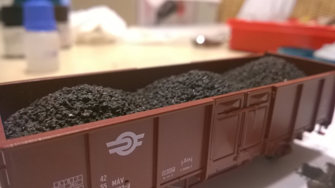 Szergelyes képeden szereplő kocsid vedd ETALONnak, tökéletesen megfelelő a kupacolás. Egy tipp: - Már a hungarocellt készítsd el hullámosra, és a szénhez IGAZI szenet használj! Öreg, kiselejtezett mozsártörőt használj a széndarab aprításához. Az előre beragasztózott hungarocellt nyomkod a szénporba, de ekkor is jobb ha használsz gumikesztyűt. Idővel majd kezd el a kocsikat "frizírozni", mert ritka a patyolattiszta szénszállító!!  Folyami (szürke) és bányahomokot (sárga), valamint folyamkavicsot is szállítottak vasúti kocsiban. Javasolnám (#14982) Zsolt76 hozzászólásának megtekintését, melyett tőlem idézett Idézet: „(#14982) Zsolt76 hozzászólása Válasz • Márc 14, 2013