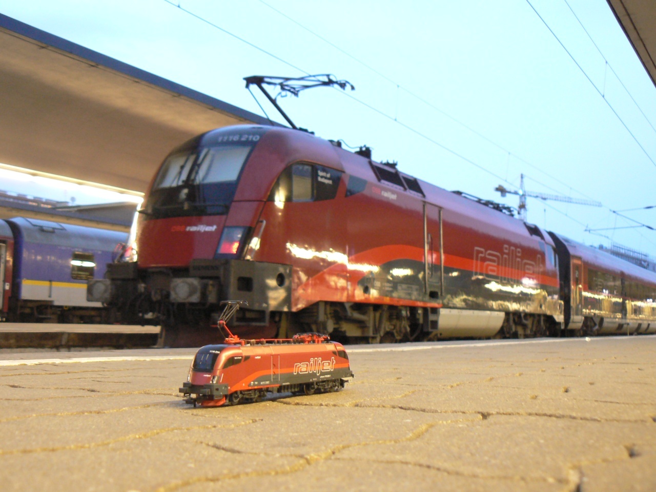 Nagyon megtetszett a RAILJET vonat, amivel utaztunk. Én már nem először utaztam rajta és pláne nem először láttam. A Bécsi Modellbau Messe 2010 kiállítás és vásáron a H0 modell RAILJET-is jól nézett ki, úgyhogy ezen okokból kifolyólag vettem egy PIKO gyártású RAILJET TAURUST Bécsben a Stephansdom közelében lévő modell boltban.