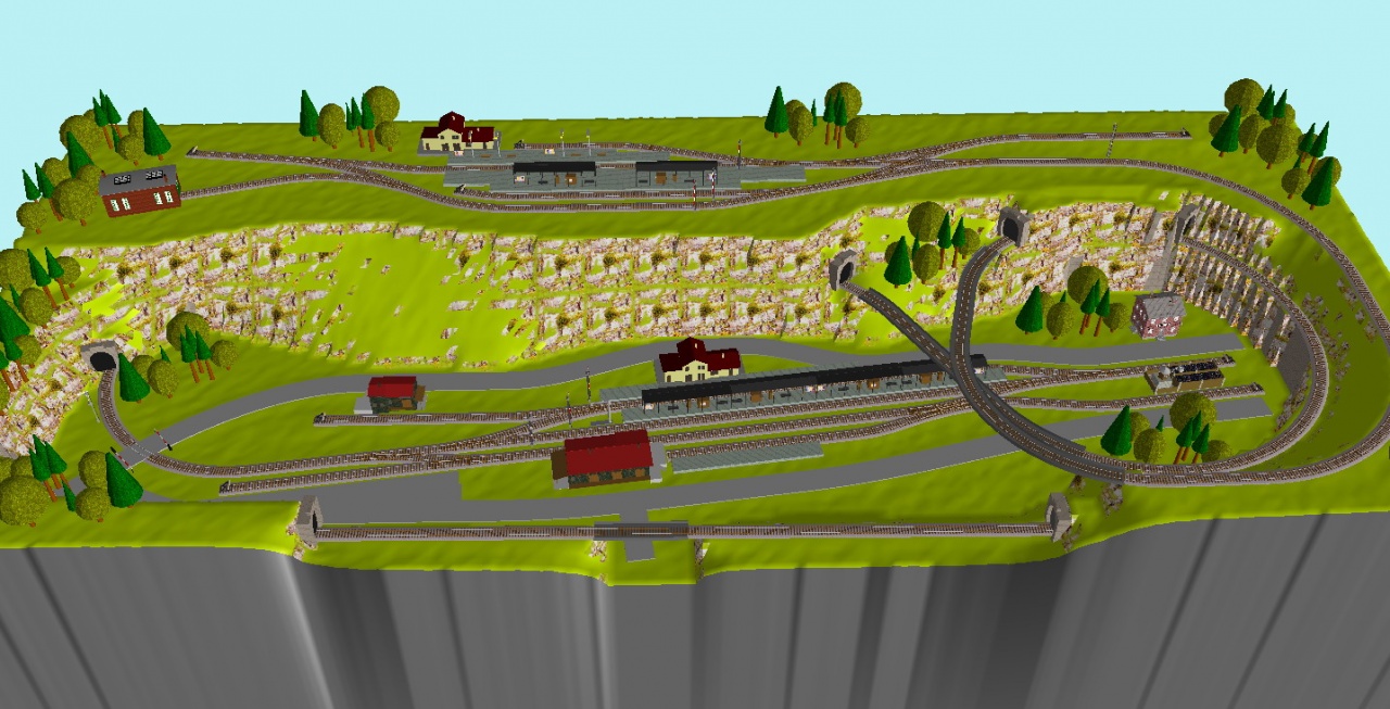 Megpróbáltam átrajzolni nagyobb ívekre, meg kiváltani a rejtett csonkákat, de ezek az állomásméretek (kicsit javított vágánykapcsolatokkal) nem férnek el...