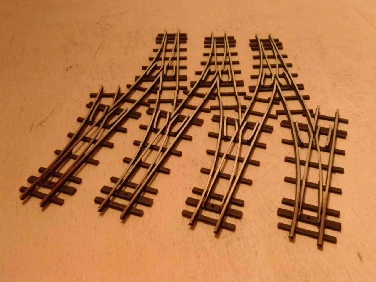 ... és csináltam 7 darab TTe kitérőt is. Aki esetleg úgy látja, hogy ezek ugyanazok, mint a H0f kitérők a múltkor, az nem a véletlen műve. Mivel ezek szervóval lesznek állítva, ezért rugalmas csúcssínekkel készültek. |