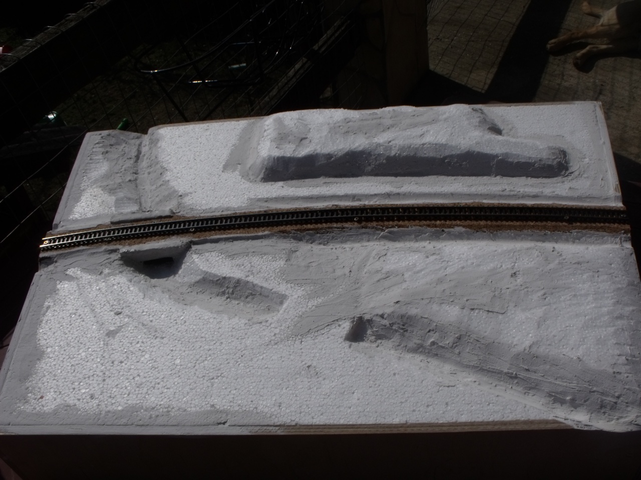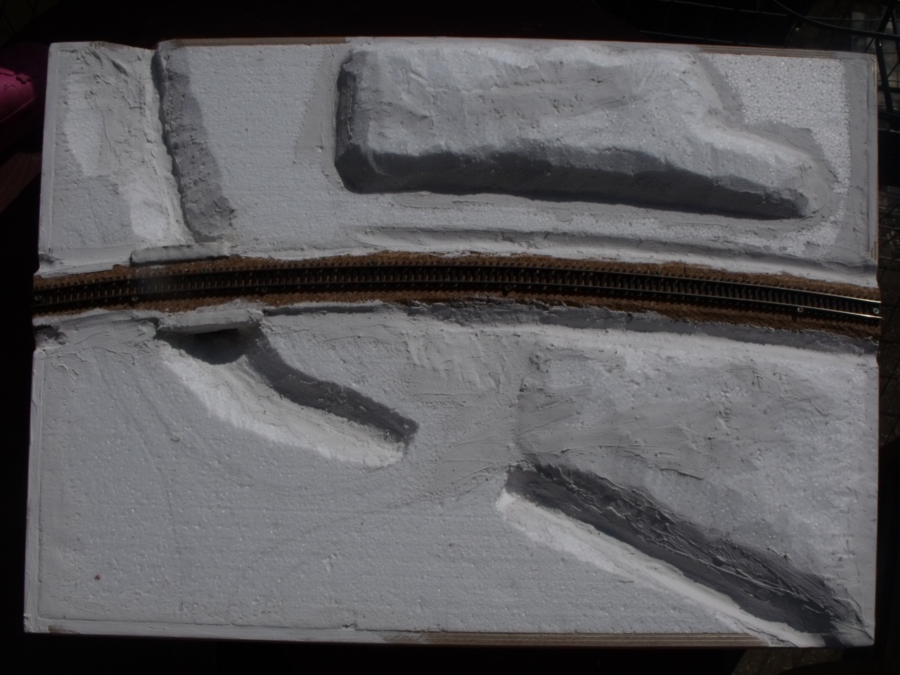 Ez jobbra folytatódik majd egy megállóval és egy iparvágány kiágazással, balra egy egyenes szakasz bevágásban, majd egy balos ív útátjáróval, ezután egy forgalmi kitérő. Küldjek róla rajzot? Idén kb ennyit szeretnék, vagy legalább balra elindulni.  |