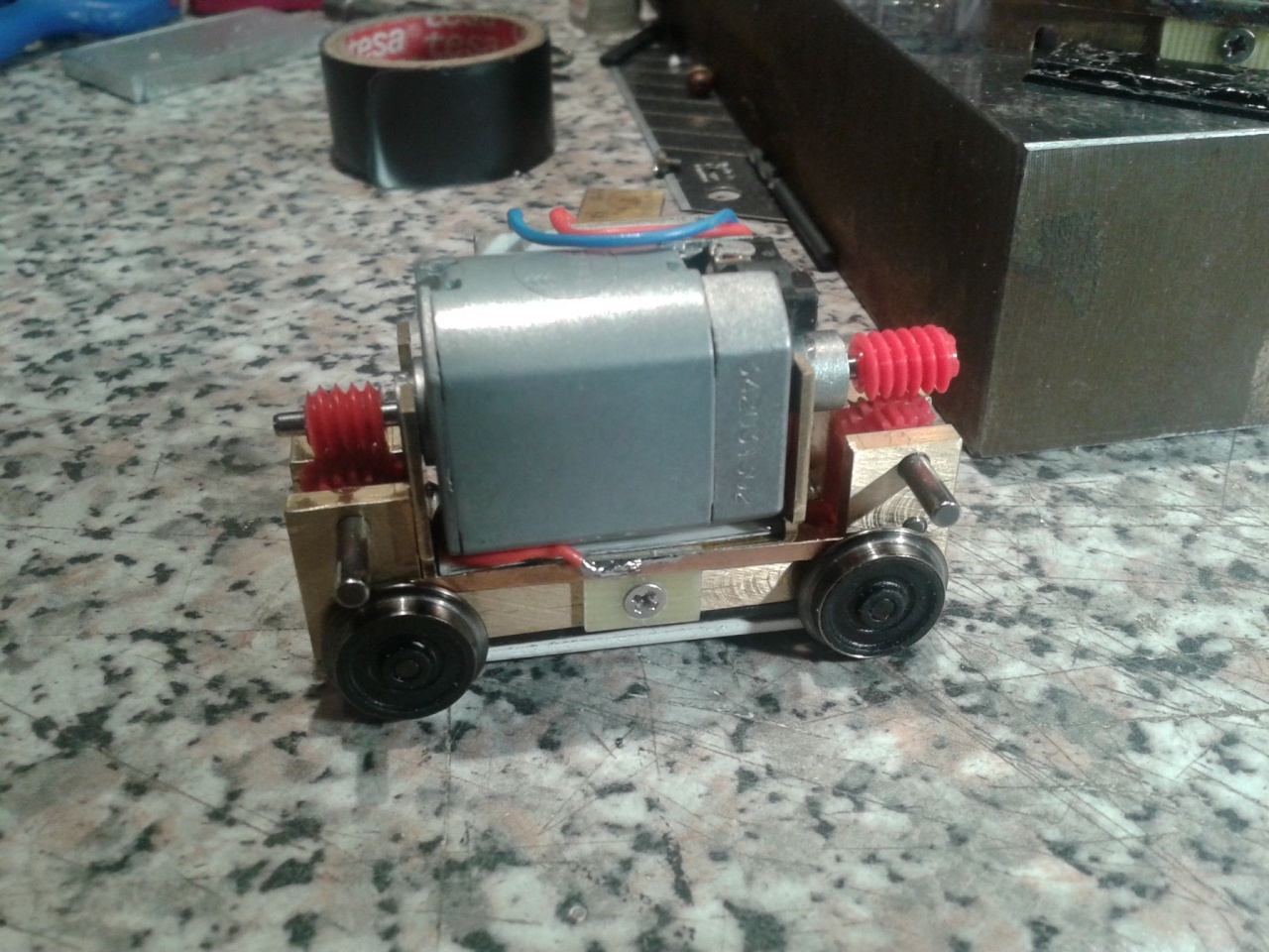 Egy Deák gyártású rézmodell amit sajna nem épp terepasztalra gyártották(ráadásul mennyiért!!) A mozdonyka kasznija feltűnően szépen van kialakítva és a festés is szép(kivéve a világítást)A motor és a hajtás kialakítása viszont egy rakás trutyi....    Mivel adott helyem volt elég macerás volt átalakítani......A hajtott kerekek és a közvető csigakerekek is kb. 1 mm-t kotyogtak! Úgy kikopott,hogy átugrottak a kerekek akár több fogat is! Így nem kis munka volt kitalálni,hogy használható legyen szegény kis mozdony.....Most itt tartok vele |