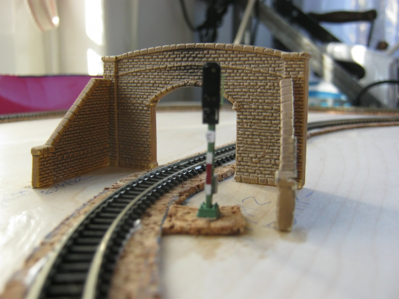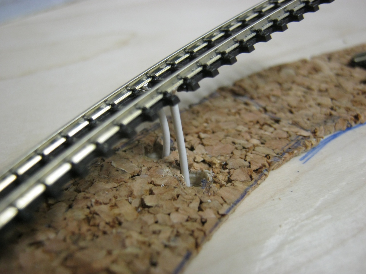 Az első képen már a parafa alátéten ücsörögnek az alsó szinten futó egyvágányú fővonal sínei, egyelőre még ideiglenesen. |