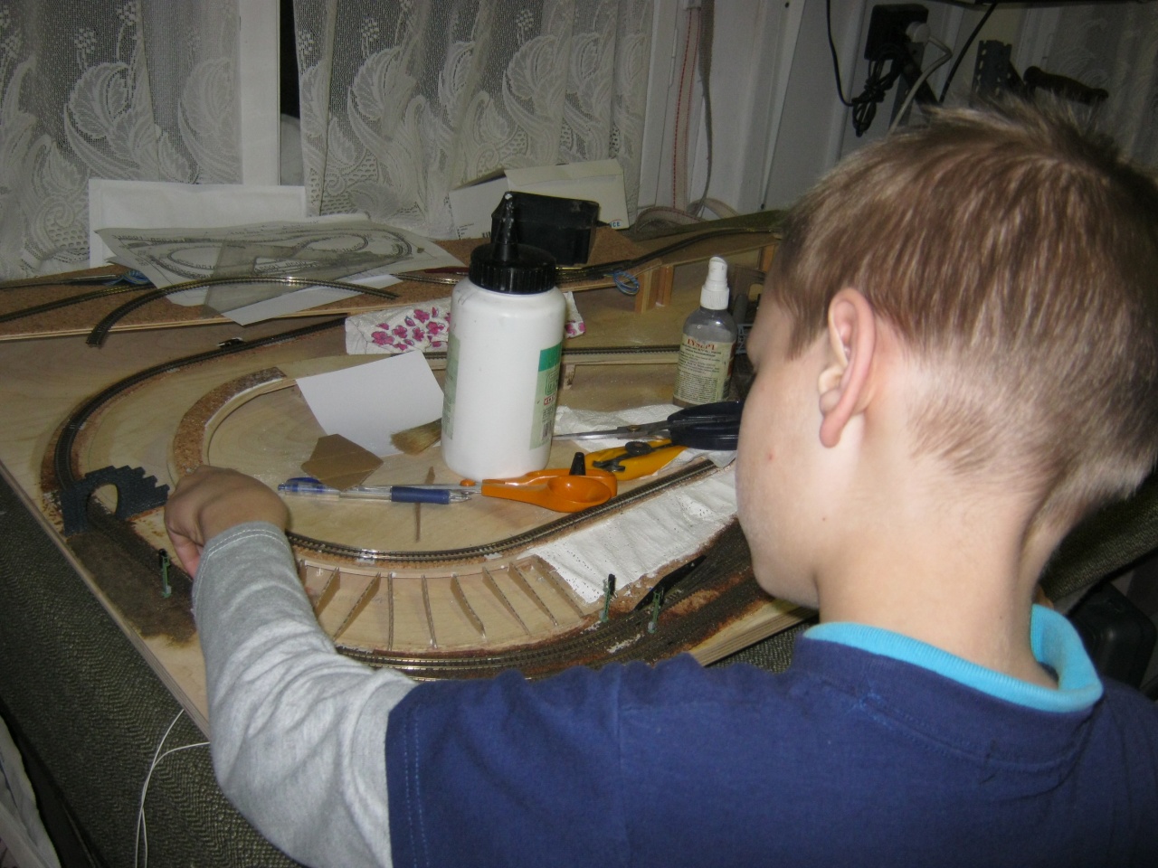 Ma megtekintette a készülő vasútját a leendő Tulajdonosa. Zsolt 9 éves, az állomásépületet ő választotta ki, rakta össze, és patinálta. Van egy olyan érzésem, hogy jó kezekbe kerül majd az asztalka...  |