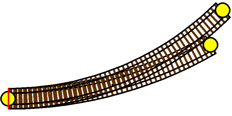 2. A szigetelt kialakítás. Előnye, hogy a csúcssínek folyamatos áramellátást kapnak, nem a csúcssín-tősín kapcsolaton múlik a dolog, és mindegyik csúcssín a saját oldali tősínnel azonos polaritással rendelkezik, ergó felvágható a kitérő. Hátránya, hogy a szívdarab alaphelyzetben egyáltalán nem kap áramot, lévén itt zárlat keletkezne, ezért ki van szigetelve. És itt van a kérdésedre a válasz, tehát az egy szigetelő vágás, és csak a szigetelt kialakításnál kell. Én mégis ezt preferálom, mert jóval stabilabb elektromosan, és a legtöbb kitérőnél olyan rövid a szigetelt rész, hogy nem jelent gondot a mozdonynak az a pár tíz milliméternyi szigetelt szakasz.