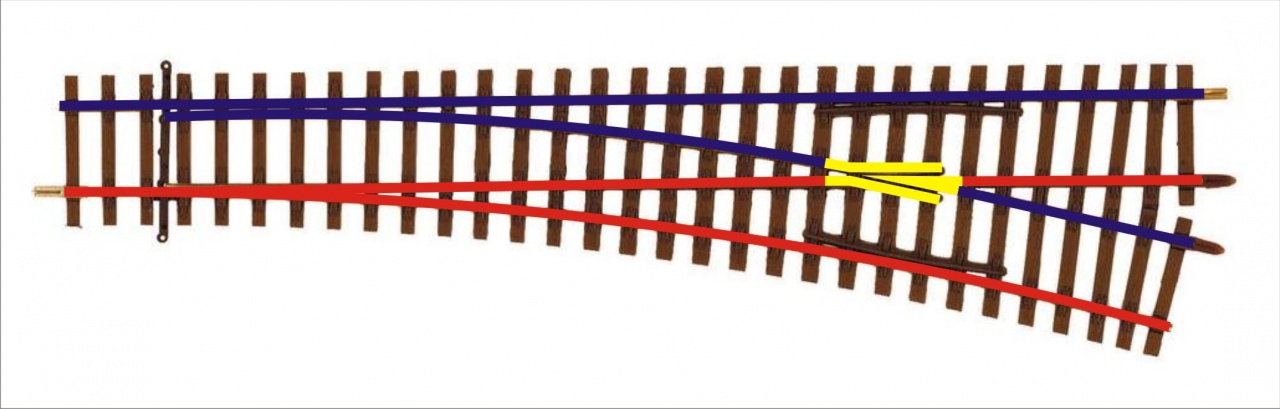 1. Az első a polarizált kialakítás, ez az amit te is csináltál. Ennek a lényege, hogy a csúcssín a tősínről veszi a delejt. Előnye, hogy a vágányzat végig el van látva feszkóval mindenféle plusz táplálás nélkül. Hátránya, hogy a csúcssín és a tősín érintkezésén múlik a csúcssínek áramellátása, ergó bármi kosz, oxidáció, beégés keletkezik, megáll az élet, de legalábbis a vonat. A másik, hogy mindkét csúcssín azonos polaritású, tehát nem lehet felvágni a váltót, mert azonnal zárlat lesz, amint ellentétes oldalról ráfut a kerék a szívdarabra.
