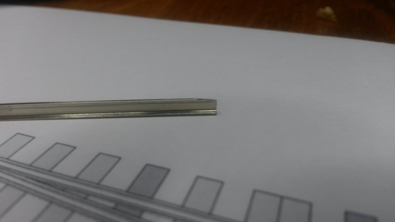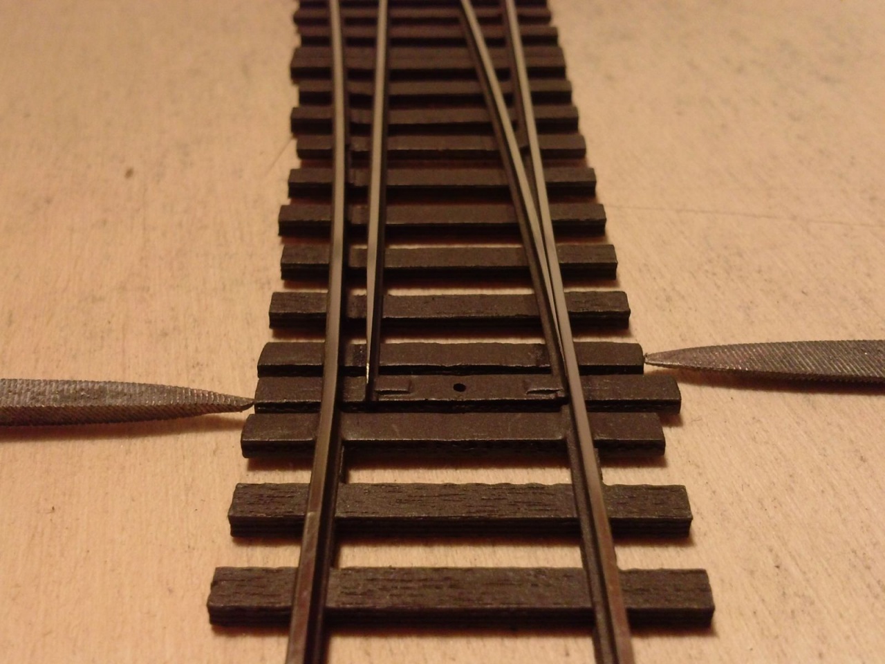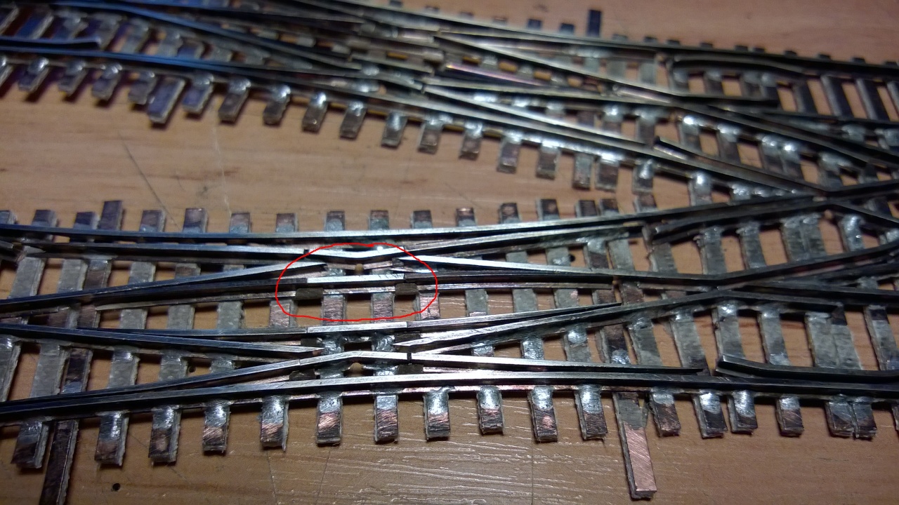 Megpróbálhatom, de szerintem nem látszik majd, mert olyan apró különbség van csak a többitől. A vége kb félszázad milliméterrel vastagabb mint a többi, nem annyira hegyes, ezért nem simul fel olyannyira a tősínre. Ezen nem segített az se, hogy mindegyik csúcssín végét picit lejtősre csiszoltam.