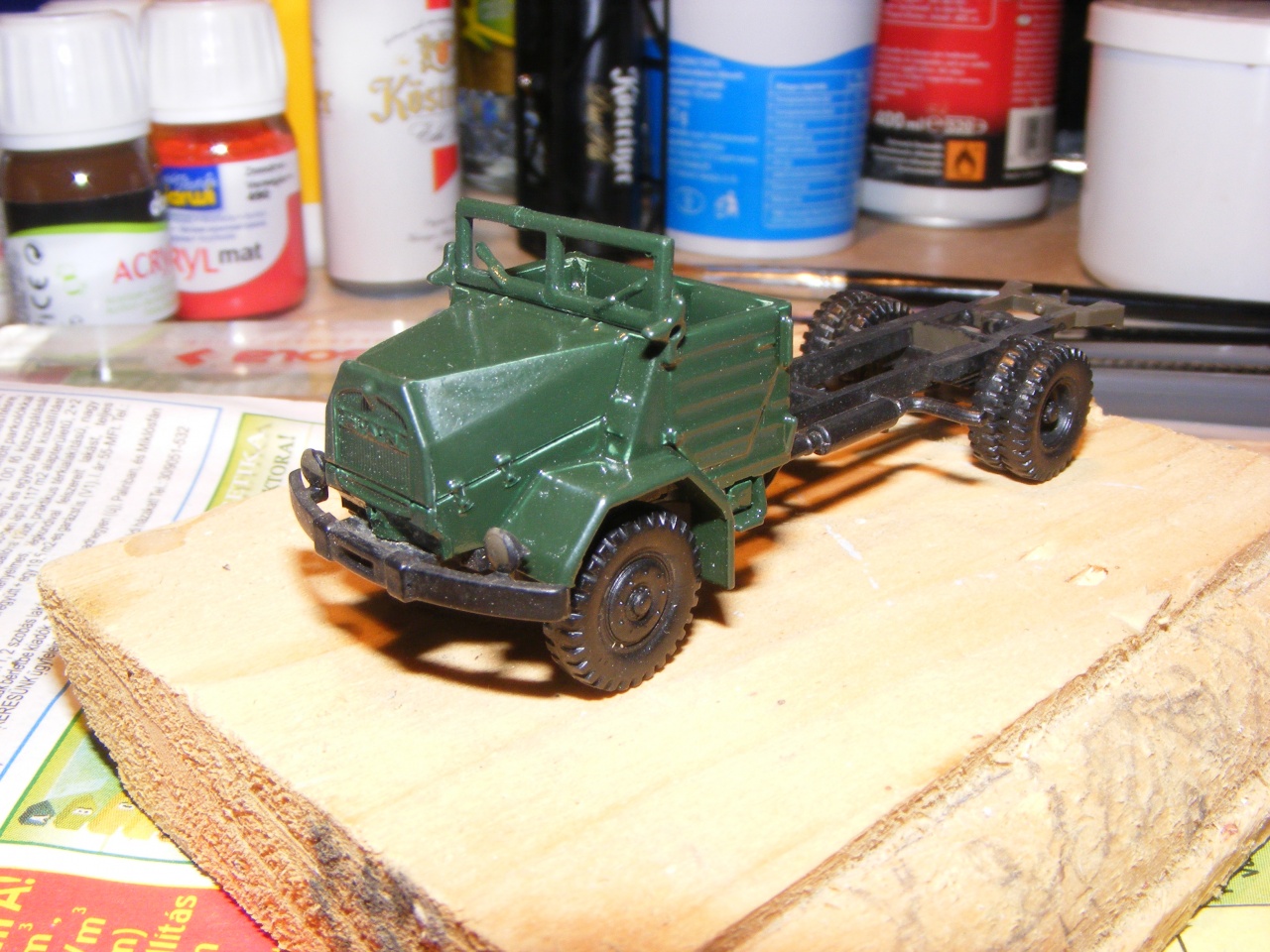 Ennek a topicnak az olvasása motiválta hogy leporoljam a festékszórót. (Elvileg) TT méretű kész makett volt az első, igaz a zöld még ecsettel.