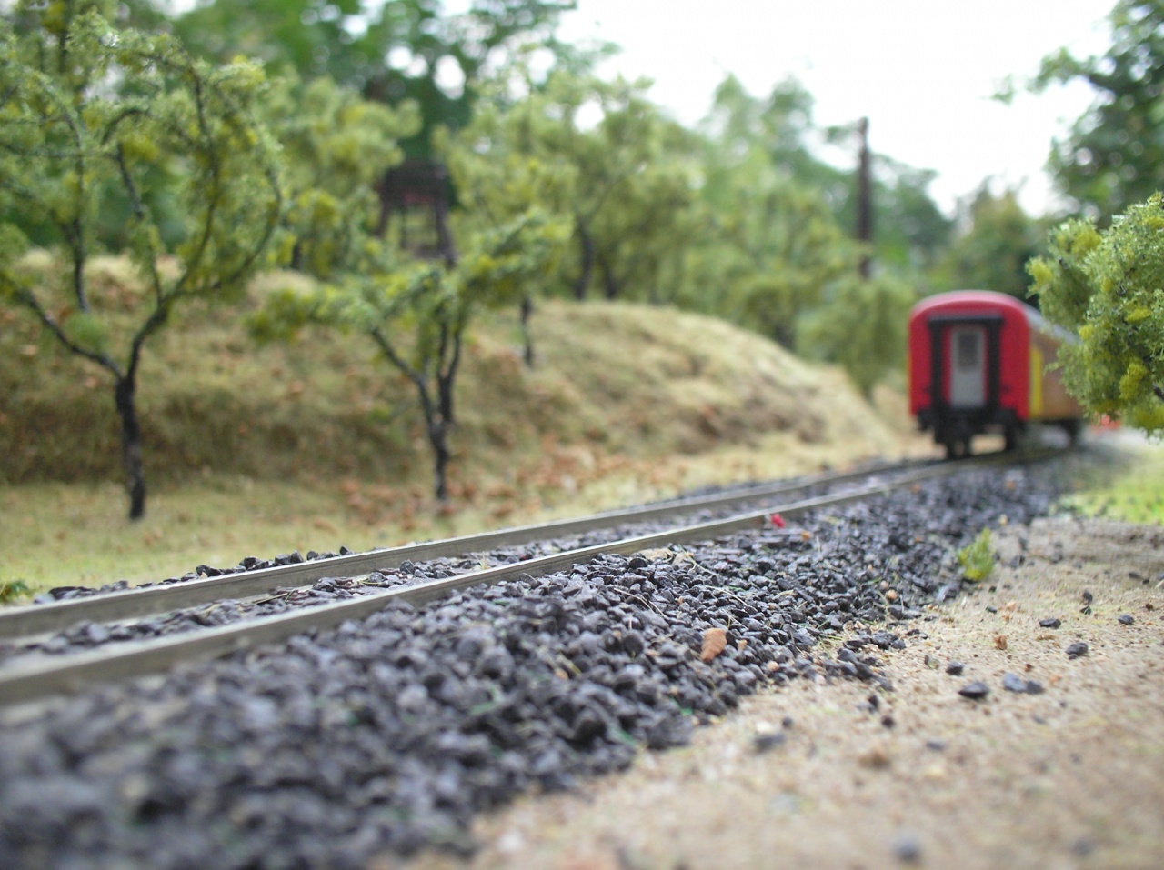 Vasútmodell kiállításon láttam már rondábbakat is...például, az egyszínű világoszöld fű mindenhol, szerintem undorító...én egyébként szándékosan nem egyszínű fűszőnyeget választottam, pont a golfpálya-effektus kiküszöbölése érdekében
