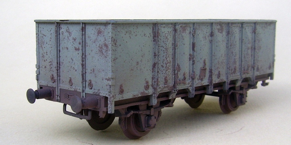 Itt van egy példa: ez a vagon is Revell festékkel készült. Ráadásul van egy alapszíne, plusz egy fedőszín rajta. Magyarul két komplett festés egy modellen, és még mindíg nem tűnt el róla egyetlen szegecs, zár, vagy sarok sem. Ezt Cellkolorral nem lehet megcsinálni. Bár még nem próbáltam  |