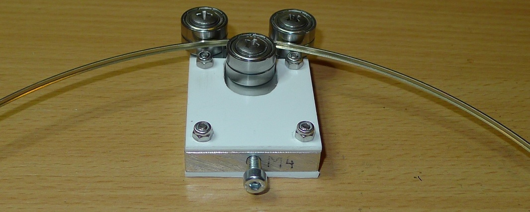 A mozgató csavar M4, de felesleges kontrázni, úgyis ellenőrizni kell, hogy milyen lett az ív. Rögzítőcsapra nincs szükség, egy sima csavart nekitekerek a középső csúszka végének, és tolja előre. Vissza meg kézzel húzom.