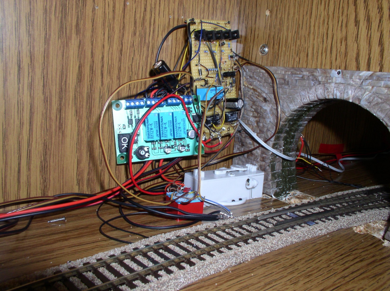 A trainmodules ingavonat vezérlője az gyári, a mellette levő infra kapuk áramkörei, és a relék pedig saját ötlet kivitelezés.