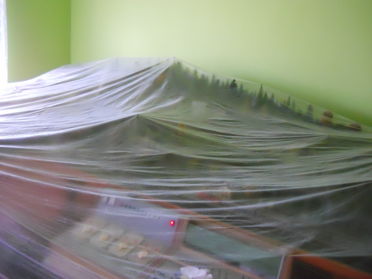 Én most egy uj világitással probálkozok. A világitotestek (LED-sorok) magán a terepasztal oldalán lesznek ( hátulján) és innen fogom megvilágitani a mennyzetet ( aránylag alacsony és srég - tetötér). A mennyzeten csak egy kb. 15 cm lelogo lap lesz ( hasonlo mint a függönytartok takaro deszkája, lambéria). Ennek a hátulján a látogatok számára láthatatlanul lesznek a további LED szalagok meg talán fénycsövek is a munkafénynek, ha a LED nem lenne elég.)