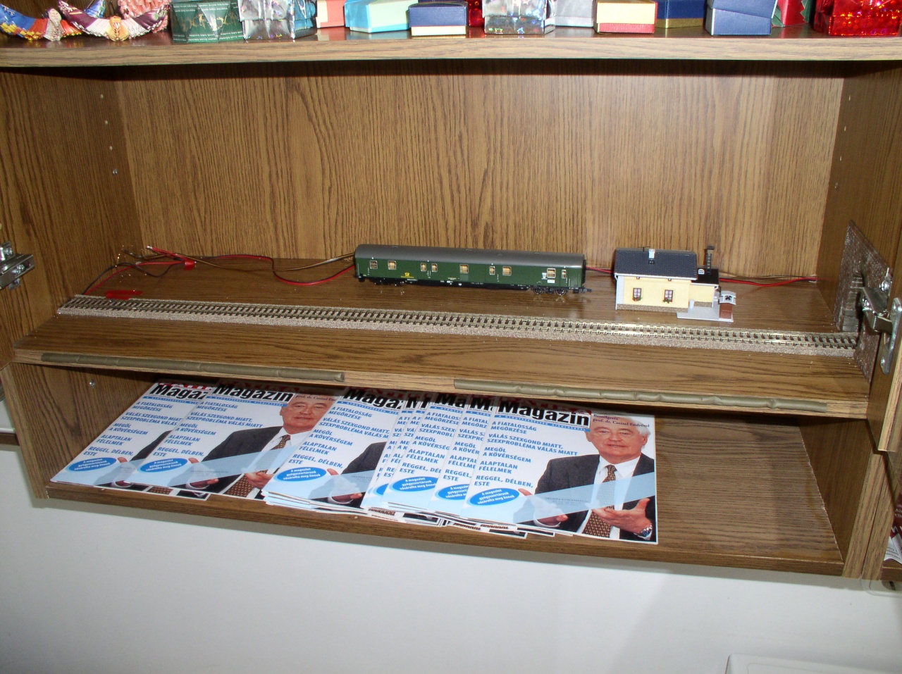 Kb 4-5 éve gondolkozom azon, hogyan lehetne, a családi munkahelyemen (patika), a 3m hosszú vitrinben egy viszonylag érdekes vasútmodell üzemet létrehozni. Ez lekötné a betérő gyerkőcök figyelmét így a szülőknek jobban lehet a szakmai infót átadni. Továbbá, talán a gyerekekben/szülőkben ismét fel lehet kelteni a vasútmodell iránt egyre szűnő érdeklődést. (ez a fórum is foglalkozott ezzel a problémával).