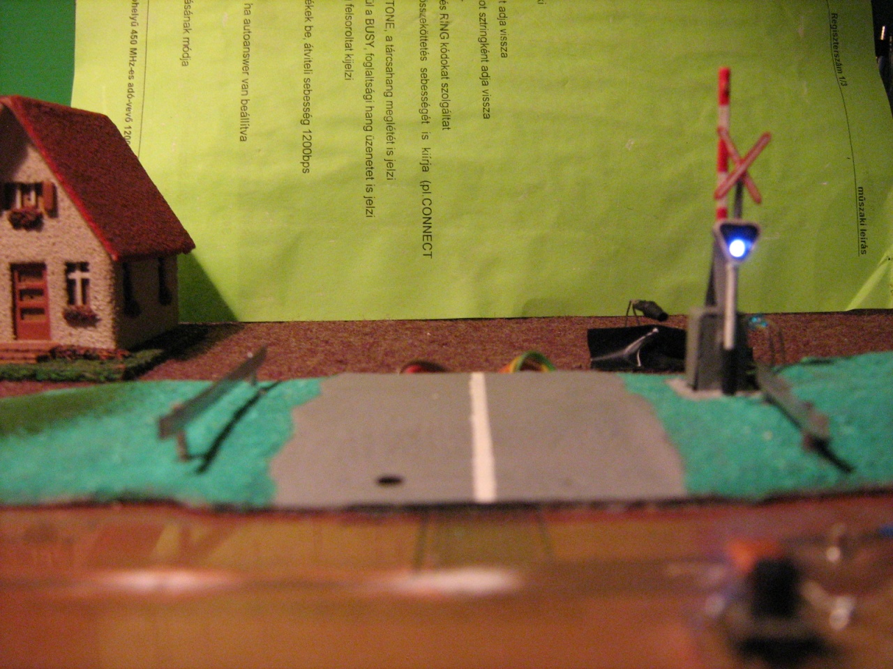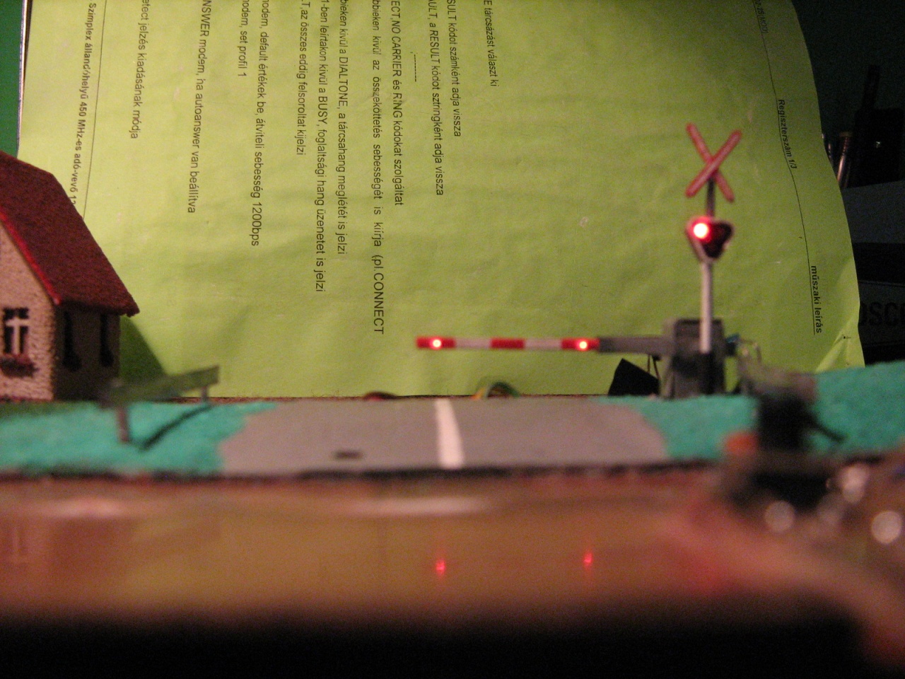 A segítségeteket szeretném kérni: Elkészítettem egy MÁV AS típusú automata, fél-és fénysorompós útátjáró modellt 1:87-es méretarányban. A sorompókat izomhuzal mozgatja (FLEXINOL-LT) a vezérlést mikrokontroller végzi. Egy-egy IR sorompó van a bemeneti, az átjáró és a kimeneti oldalon amelyek egy érpáron vannak a vezérléshez kötve, méretük 1x1,5 cm. A sorompó programozható: tudja a LED-szerű és az izzó-szerű villogást, be-és kikapcsolható az elővillogás, és programozható a zárás sebessége a terepasztal méreteinek megfelelően. Minden az alaplapra van szerelve csak 2 furat kell a terepasztalon a felszereléshez: az egyik a 15V~ tápnak, a másik a 2 db IR-nek, és működik.
