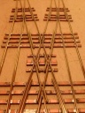 Leginkább sínprofil, és csíkokra vágott nyáklap. Ezekből tk. minden elkészíthető. Én szeretem a szerkezeti szempontból nem fontos talpfákat lézervágott rétegelt lemezből készíteni, mert egyrészt szebb, másrészt kevésbé macerás így kialakítani a kitérőt, mint minden egyes talpfát forrasztgatni. Viszont így valamivel drágább. |