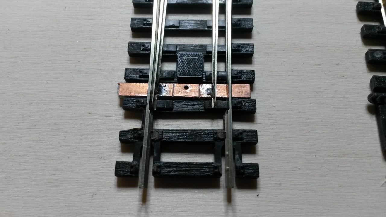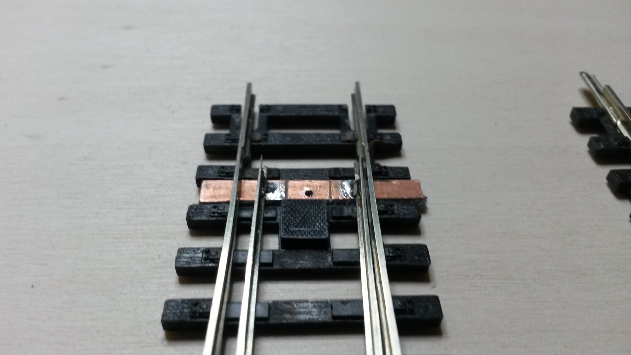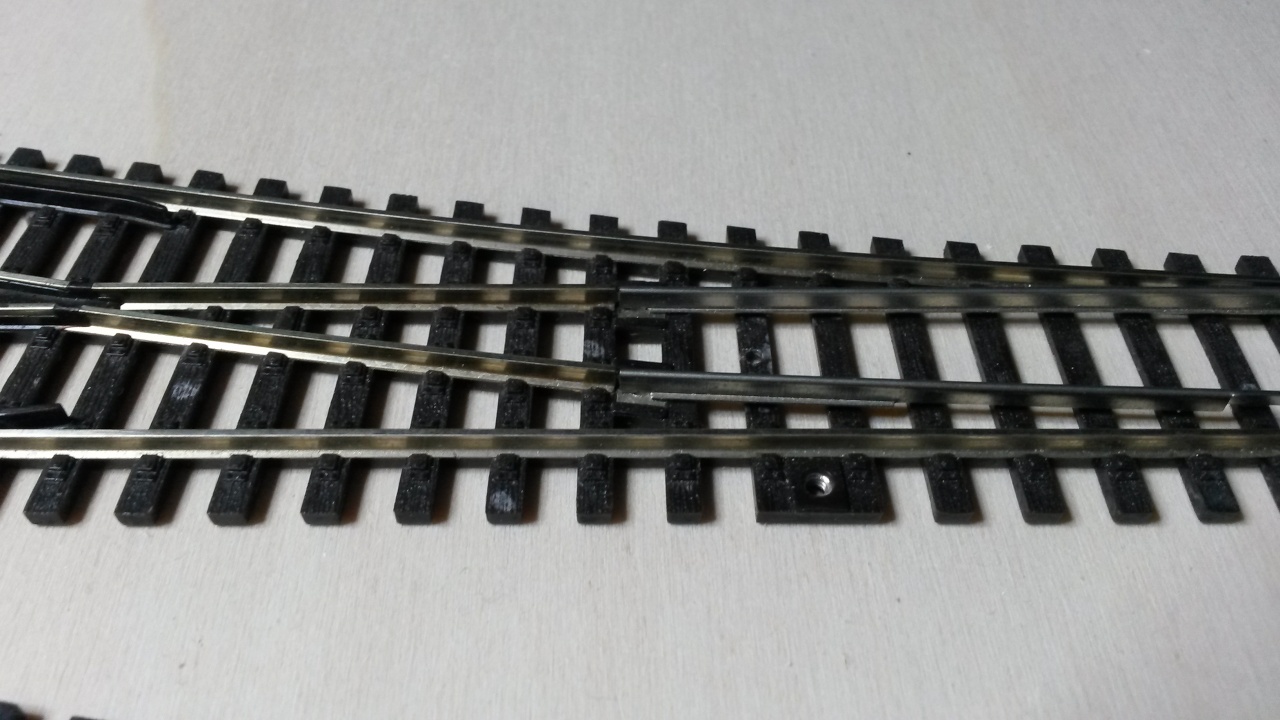 Ezért fogtam egy kitérőt, amit nem sajnáltam, akár tönkre tenni is és kicseréltem a csúcssíneket benne. Célom az volt, hogy megbízhatóbb kitérőt kapjak. Az egész művelet elsőre kb egy óra volt. Sokat kísérleteztem, későbbiekben szerintem 15 perc lenne egy átalakítás. Ezen a prototípuson még egy picit megolvadt a szomszédos műanyag talpfa, mondjuk a működést nem befolyásolja, de már megvan a technika, hogy ezt elkerüljem.