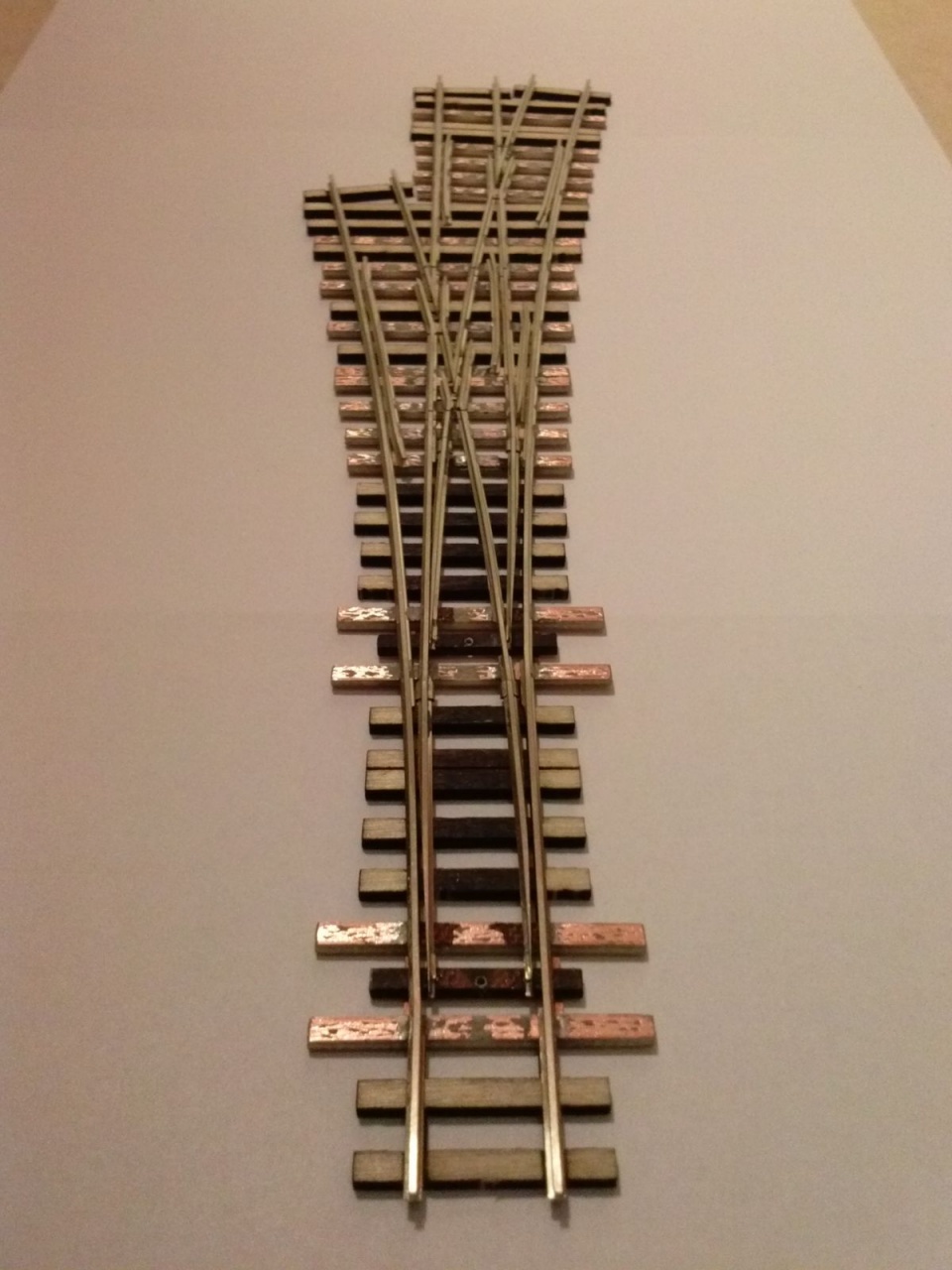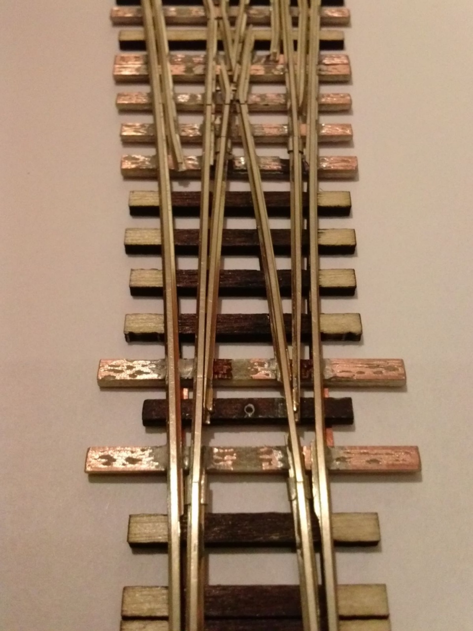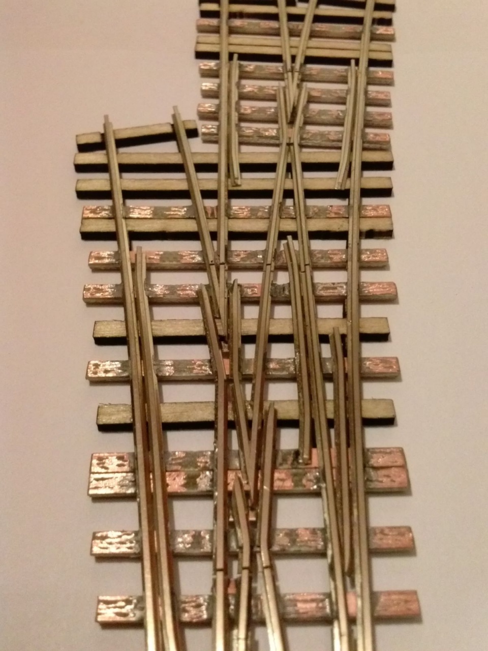 Ezért fogtam egy kitérőt, amit nem sajnáltam, akár tönkre tenni is és kicseréltem a csúcssíneket benne. Célom az volt, hogy megbízhatóbb kitérőt kapjak. Az egész művelet elsőre kb egy óra volt. Sokat kísérleteztem, későbbiekben szerintem 15 perc lenne egy átalakítás. Ezen a prototípuson még egy picit megolvadt a szomszédos műanyag talpfa, mondjuk a működést nem befolyásolja, de már megvan a technika, hogy ezt elkerüljem.
