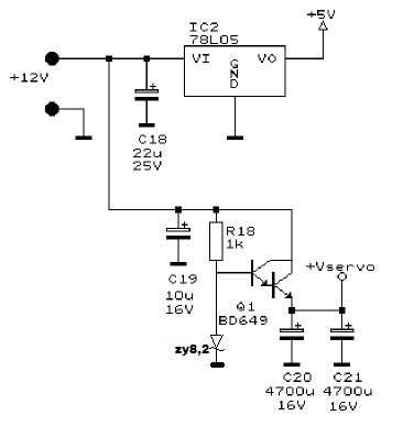 Mániám, ezzel lehet nem egyetérteni, hogy a Zener az egyik legmegbízhatatlanabb alkatrész, ha elszakad, jó esély van arra, hogy az összes szervo meghal. 6,8V-sat használnék.