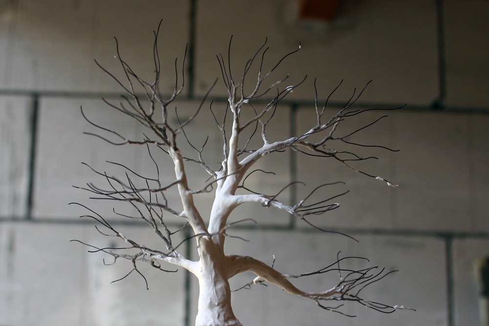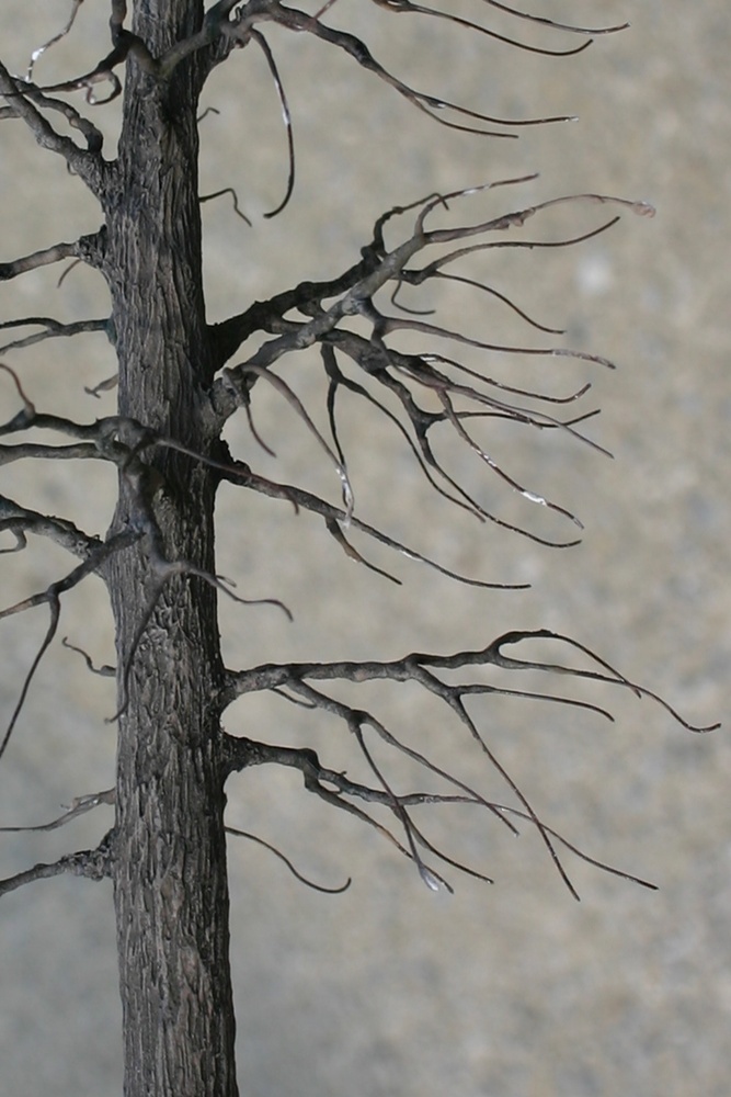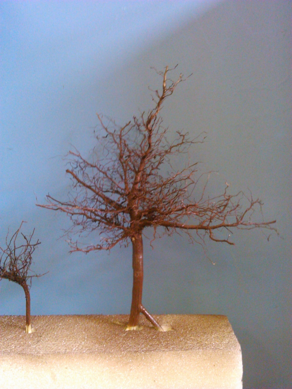 Én egyszerű dudva gyökeréből próbáltam meg fákat készíteni, és kiszárítás után ilyen lett. A festést hirtelen felindulásból tettem, nem a legjobb ötlet volt a fényes akrilfesték spray, de ez volt kéznél.  Már csak a lombanyag hiányzik... |