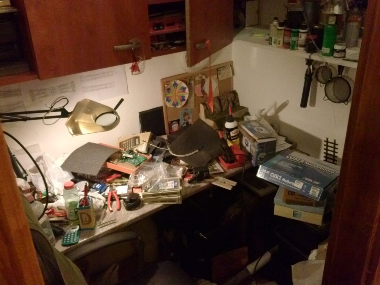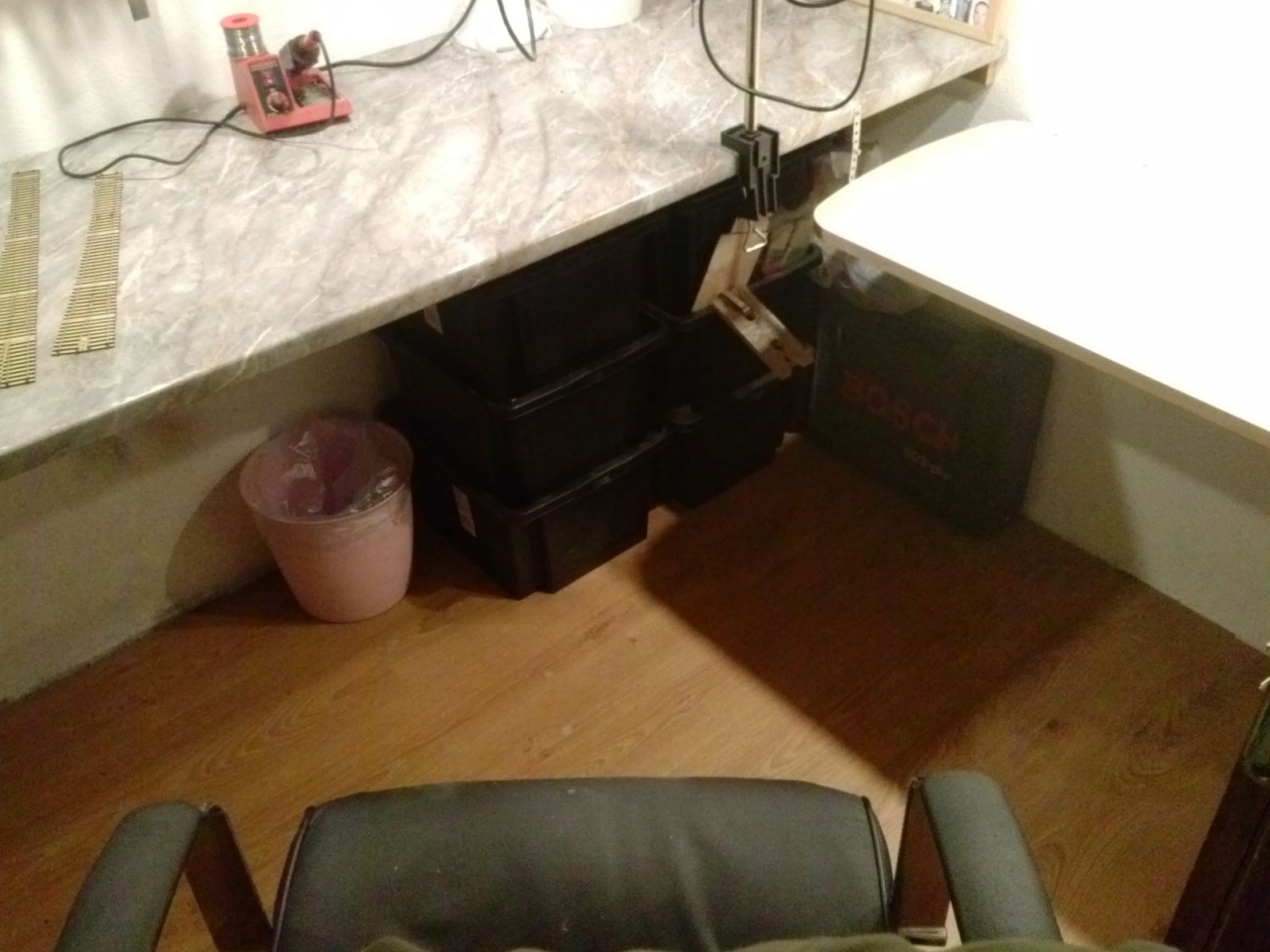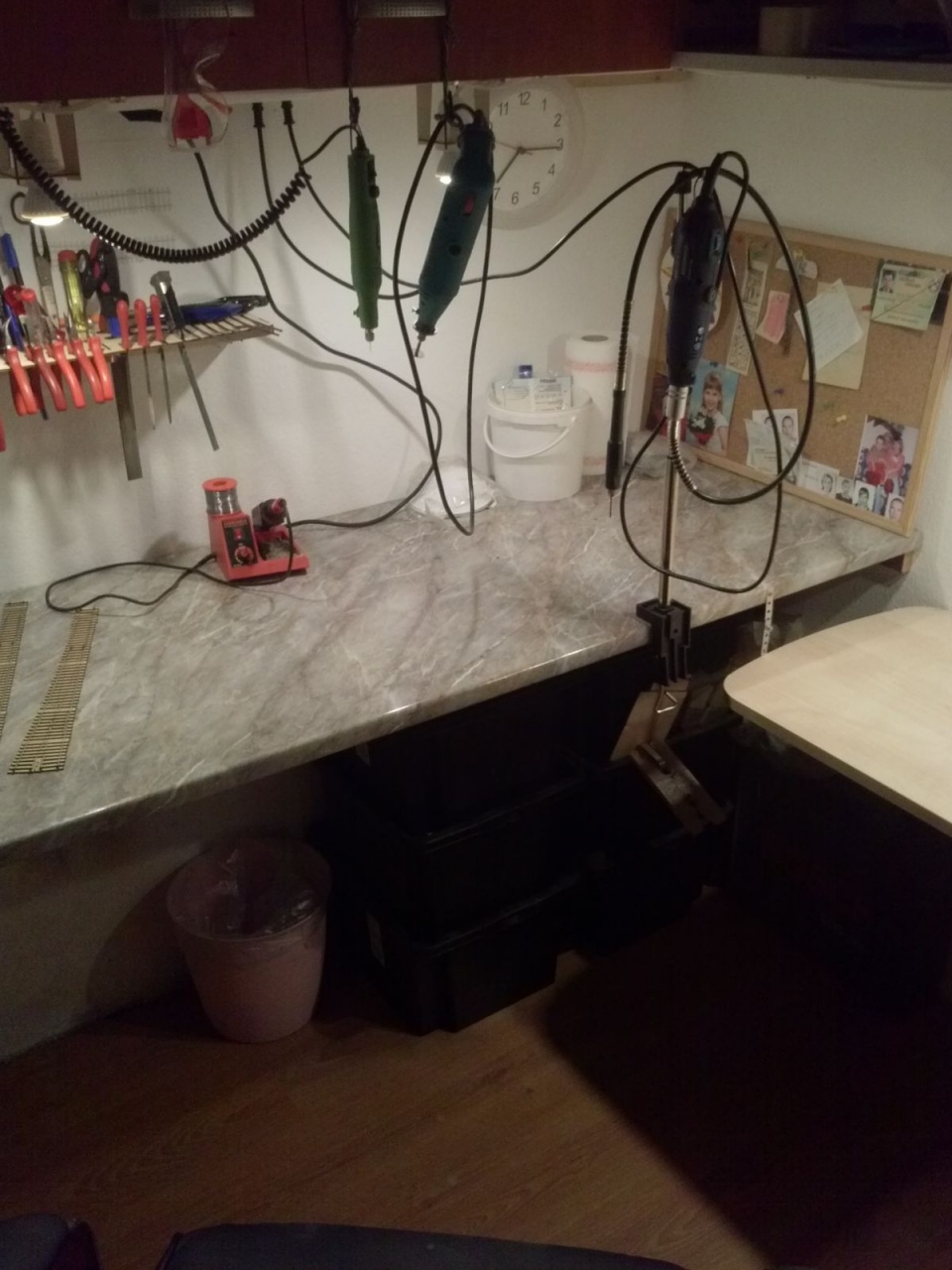 Csináltam síntartót, nyáktartót, szerszámtartót, még egy asztalt, ledes világítást, és 12 db asztal feletti konnektort, mert eddig csak 4 darab volt az asztal alatt. Azt hiszem, így már könnyebben tudnak dolgozni a droidok!  |