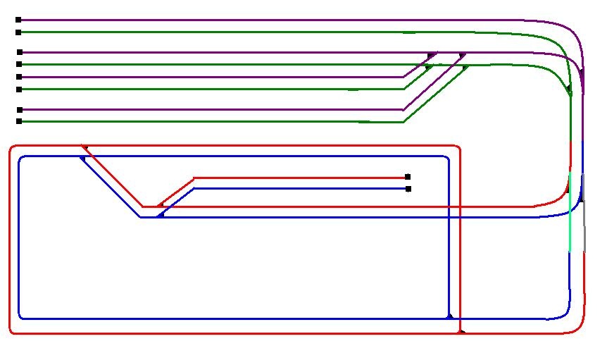 Kövessétek végig a színeket és rájöttök, hogy nem hurok, hanem ovál pálya aminek van két kiágazása..