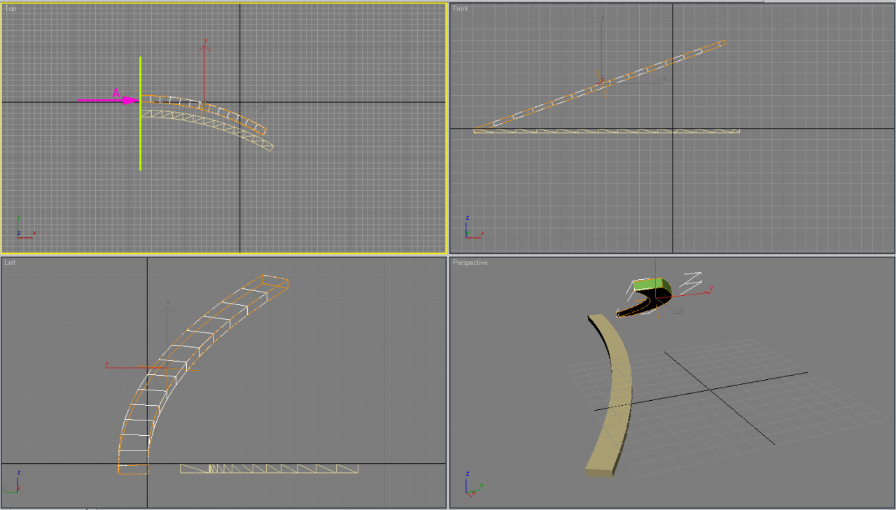 Ív esetén a megemelt véget vízszintesre vissza"feszítve" csavargörbét kapsz.
