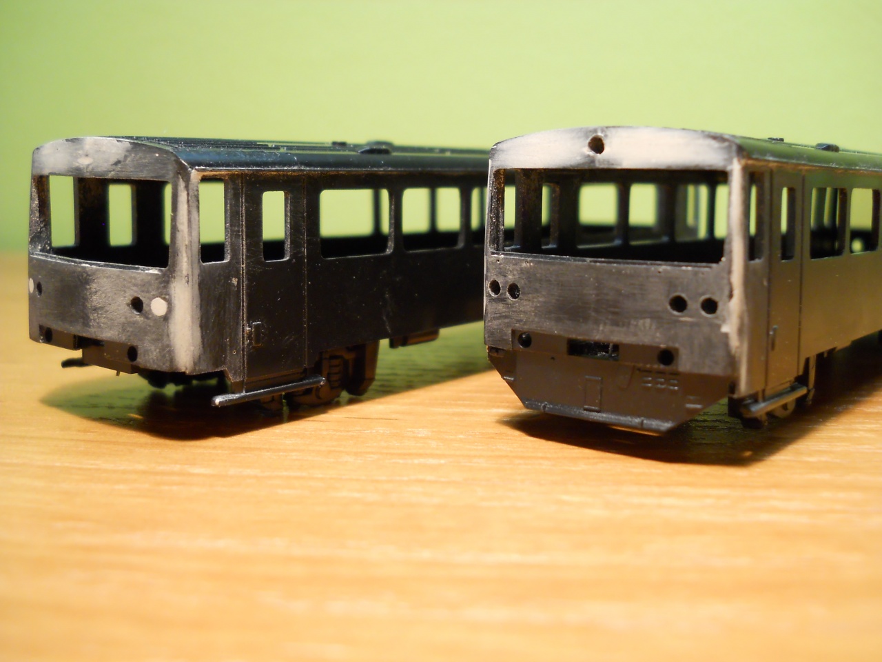 A kit egyébként alkalmas arra is, hogy mellékkocsit építs belőle, ehhez a homlokfalról el kell távolítani (le kell vágni) a homlokfal alatti szoknyalemezt, illetve a kiugrót szintén a hátsó ablak síkjába kell csiszolni. A lámpák dobozát is síkba kell csiszolni. Ha IV. korszakos (piros, világosszürke főkerettel) mellékkocsit szeretnél, akkor azon négy lámpahely van (a külső fehér, a belső vörös, tolt vonatnál a két fehér fény jelölte meg a vonat elejét), ha későbbit (piros kasztni+sötétszürke - vagy fekete? - főkeret ill. sárga csíkos verzió), akkor csak a belső vörös fények maradnak, a másik két lyukat el kell tűntetni.