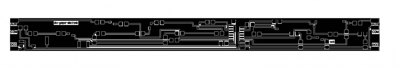 Nem rossz ez a panel, de mielőtt a NYÁK-üzembe küldenéd a gerbert, egy kicsit át kell(ene) tervezni. Nézd meg az enyémet! Van benne a végeinél egy-egy befelé benyúló, nyégyszög alakú, látszólag sehova nem vezető, felesleges "forrpont". Azt ki kell marni, különben nem tudod majd feltenni a tetőbe! Nem figyeltél, nézd meg odahaza a kocsi belesejét! A jobb alsó felén biztos, hogy útban ven egy vezető, a bal felsőbe sem lehet ezt ránézésre megcsinálni. Nagyon macerás a kocsitető belső feléből kireszelni az a két pozícináló fület, ami az öntéskor kerül a kaszniba, nem véletlenül. Nem véletlenül tartottam meg az eredeti árambevezetés helyét sem.