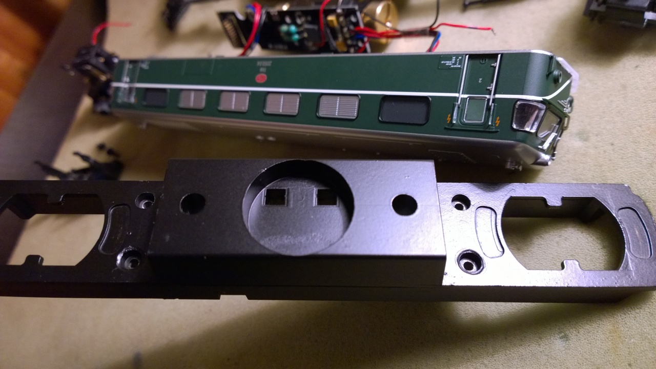 Hát igen, nem egy Fordítókorongos minőségű videó, de jobbat nem találtam. Robi valamelyik nap megmutatta a linkelt roco alkatrész listából 28-as jelü alkatrészt. Ez egy közdarab, hogy az eredeti 23mm-es (?) hangszóró helyére a Zimo kocka kerüljön. Sajnos a legkisebb térfogatú dobozt választották, lehet ezért gyengébb a hang. A Szergejben pedig megoldották a nagy dobozal, aminek két lába van, pont beleillik az öntvény két furatába, a hangszóró meg a kardán fölött. |