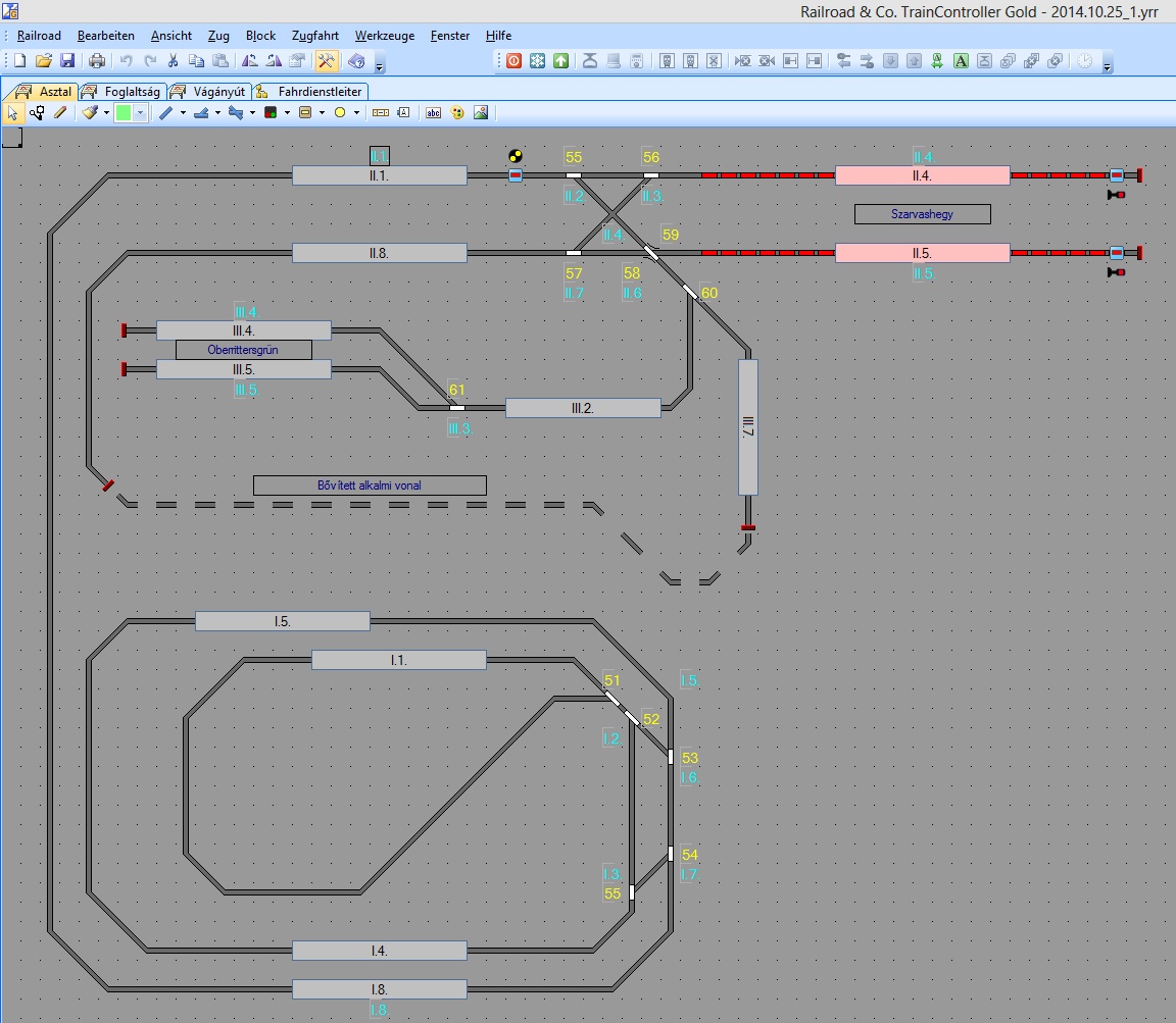 Tegnap az I.4. és I.8. szakasz ágyazat lerakása és ragasztása után szintén foglaltság volt. Az I.8. elég hamar jó irányba fordult, az I.4. este is villogott folytonosan. Reggelre megszűnt a villogás, helyesen jelez.