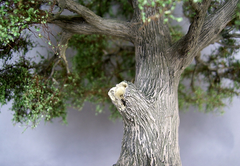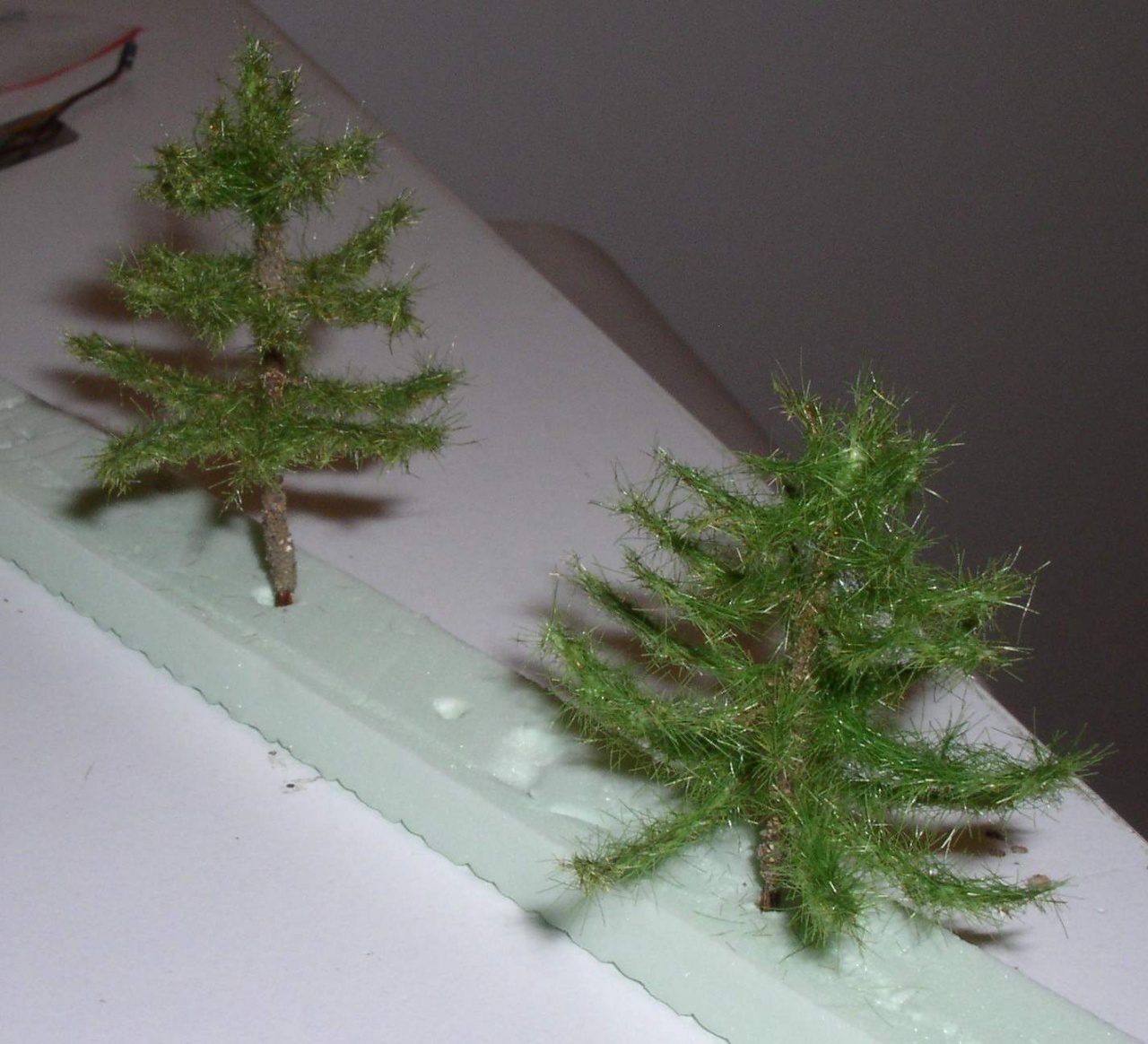 Én sajnálom, hogy az első fámra csak "nyomtam" a füvet, aztán mire odanéztem torzonborz lett. Készül még néhány fám, ott sokkal jobban figyelek. A törzseik már kérgesek, nemsokára jön a tűlevél  |
